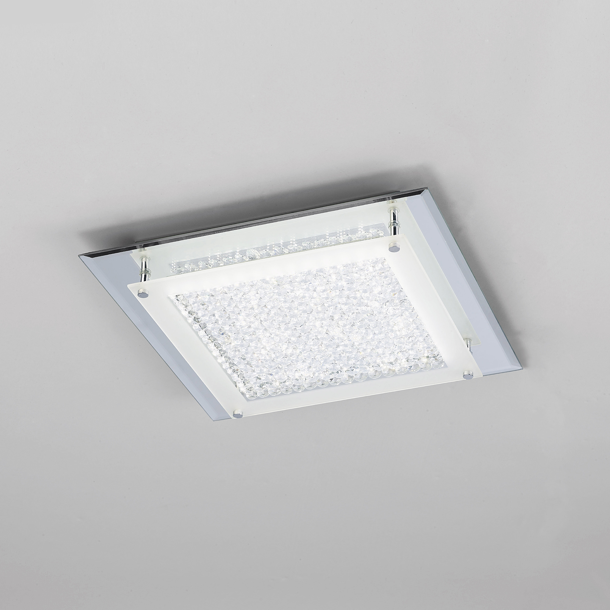 Потолочный светильник LED испанской компании MANTRA из стекла, хрусталя и металла цвета хром. Цветовая температура 4000К (нейтральный свет). Световой поток 1800 Lm. Производство Испания