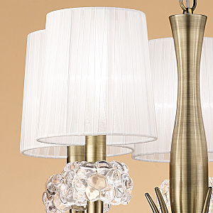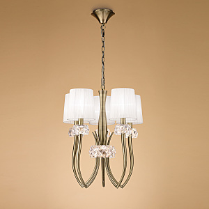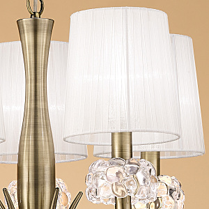 Допускается отличие страны-изготовителя, указанной в характеристиках. Линии производства могут находиться в нескольких государствах. Это не влияет на качество изготовления товара: все заводы данного бренда работают по общим стандартам, а готовые изделия проходят соответствующий контроль.Испания Коллекция Loewe ЦветЦвет арматуры Античная латунь Цвет Бронза Материал арматуры Металл Цвет декора прозрачный Цвет плафона Белый Материал декора Стекло Материал плафона Органза РазмерыВысота (мм) 2240 Диаметр (мм) 500 Высота минимальная (мм) 740 Возможность регулировки высоты Есть ЭлектрикаКоличество ламп (шт) 5 Цоколь E14, E27 Тип лампы Энергосберегающая (КЛЛ) Лампочки в комплекте Нет в комплекте Возможность подключение диммера Есть Мощность лампы (Вт) 20 Общая мощность (Вт) 100 Напряжение (В) 220 Мощность эквивалентная лампе накаливания 325 Дополнительная информацияСтепень защиты (IP) IP20 Место установки на потолок Вес (Кг) 7,7 Тип подвеса На цепи -