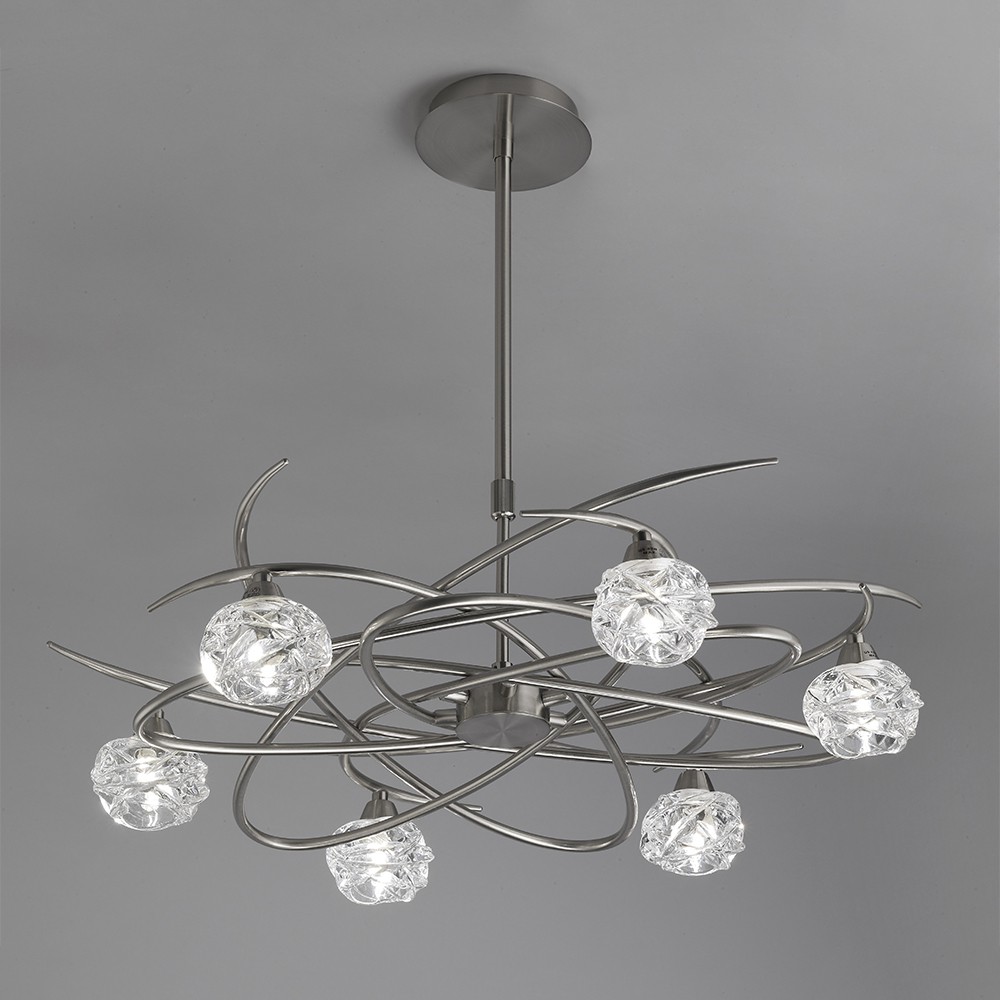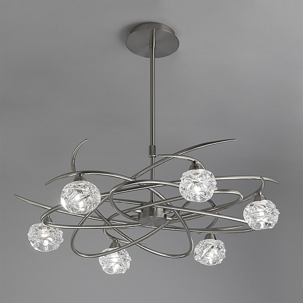 Допускается отличие страны-изготовителя, указанной в характеристиках. Линии производства могут находиться в нескольких государствах. Это не влияет на качество изготовления товара: все заводы данного бренда работают по общим стандартам, а готовые изделия проходят соответствующий контроль.Испания Коллекция Maremagnum ЦветЦвет арматуры Никель Цвет Никель Материал арматуры Металл Цвет плафона прозрачный Материал плафона Стекло РазмерыВысота (мм) 660 Диаметр (мм) 690 Высота минимальная (мм) 420 Возможность регулировки высоты Есть ЭлектрикаКоличество ламп (шт) 6 Цоколь G9 Тип лампы Светодиодная, Галогеновая Лампочки в комплекте Лампы в комплекте Возможность подключение диммера Есть Мощность лампы (Вт) 33 Общая мощность (Вт) 198 Напряжение (В) 220 Дополнительная информацияСтепень защиты (IP) IP20 Техническая оссобеность Телескопическая/Регулируемая по высоте -