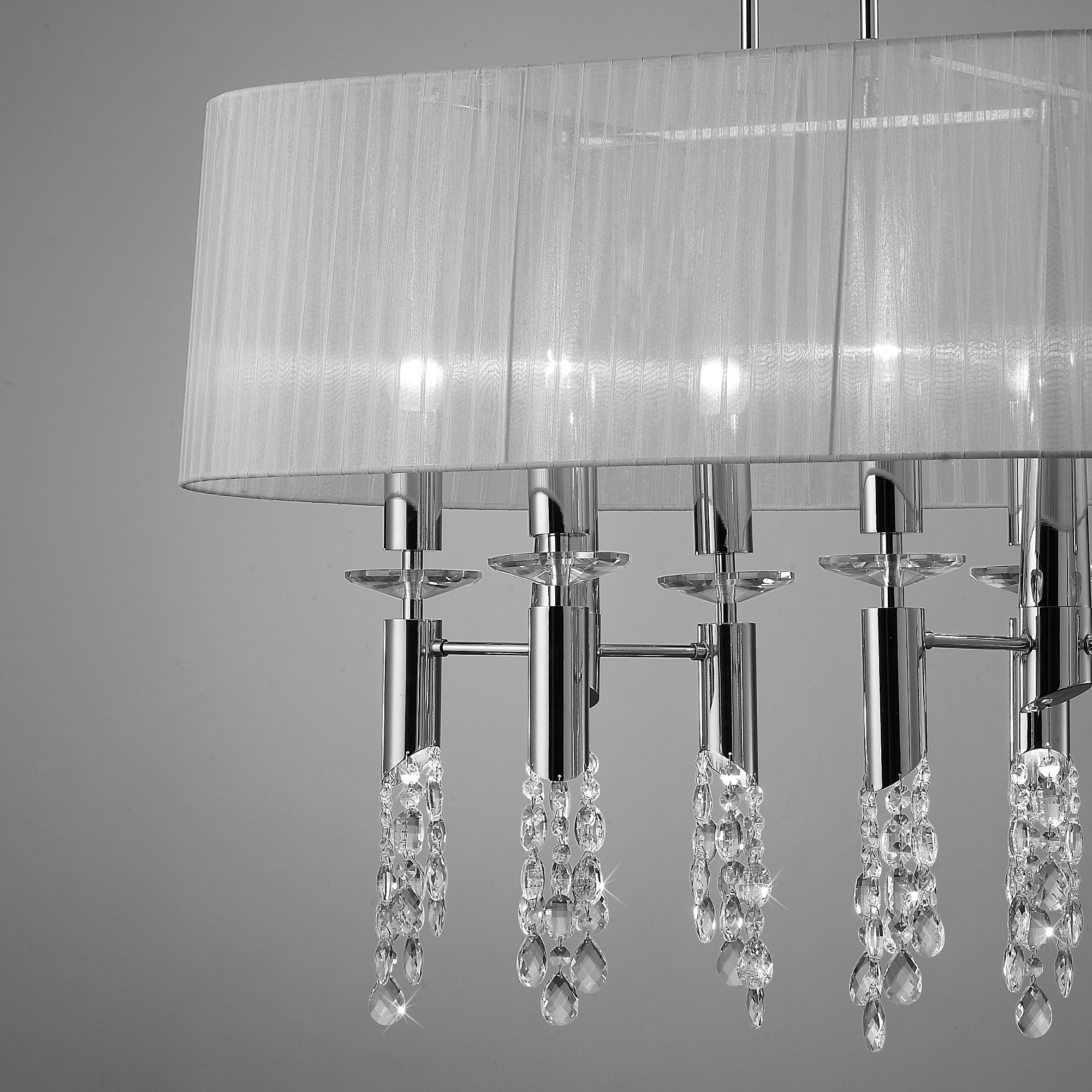 Допускается отличие страны-изготовителя, указанной в характеристиках. Линии производства могут находиться в нескольких государствах. Это не влияет на качество изготовления товара: все заводы данного бренда работают по общим стандартам, а готовые изделия проходят соответствующий контроль.Испания Коллекция Tiffany ЦветЦвет арматуры Хром Цвет Хром Материал арматуры Металл Цвет декора прозрачный Цвет плафона Белый Материал декора Хрусталь Материал плафона Органза РазмерыВысота (мм) 1650 Длина (мм) 1000 Высота минимальная (мм) 1200 Ширина (мм) 500 Возможность регулировки высоты Есть ЭлектрикаКоличество ламп (шт) 12 Цоколь G9, E27 Тип лампы Светодиодная, Энергосберегающая (КЛЛ) Лампочки в комплекте Нет в комплекте Возможность подключение диммера Есть Мощность лампы (Вт) 20+5 Общая мощность (Вт) 150 Напряжение (В) 220 Мощность эквивалентная лампе накаливания 888 Дополнительная информацияСтепень защиты (IP) IP20 Место установки на потолок Вес (Кг) 10,89 -