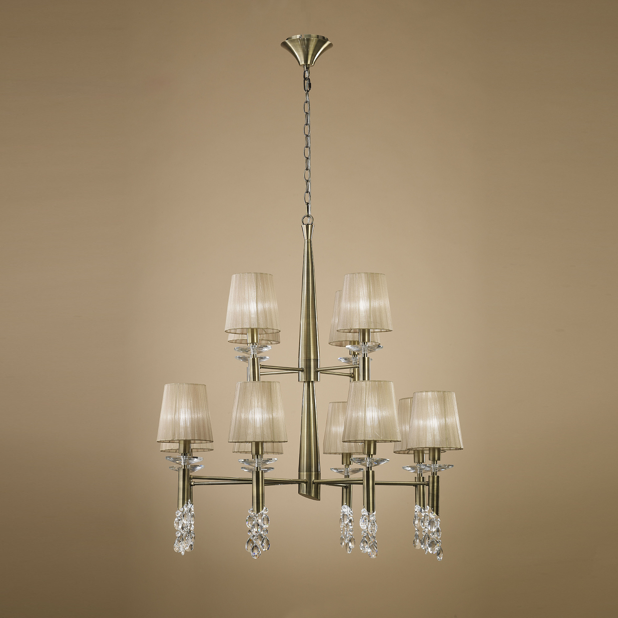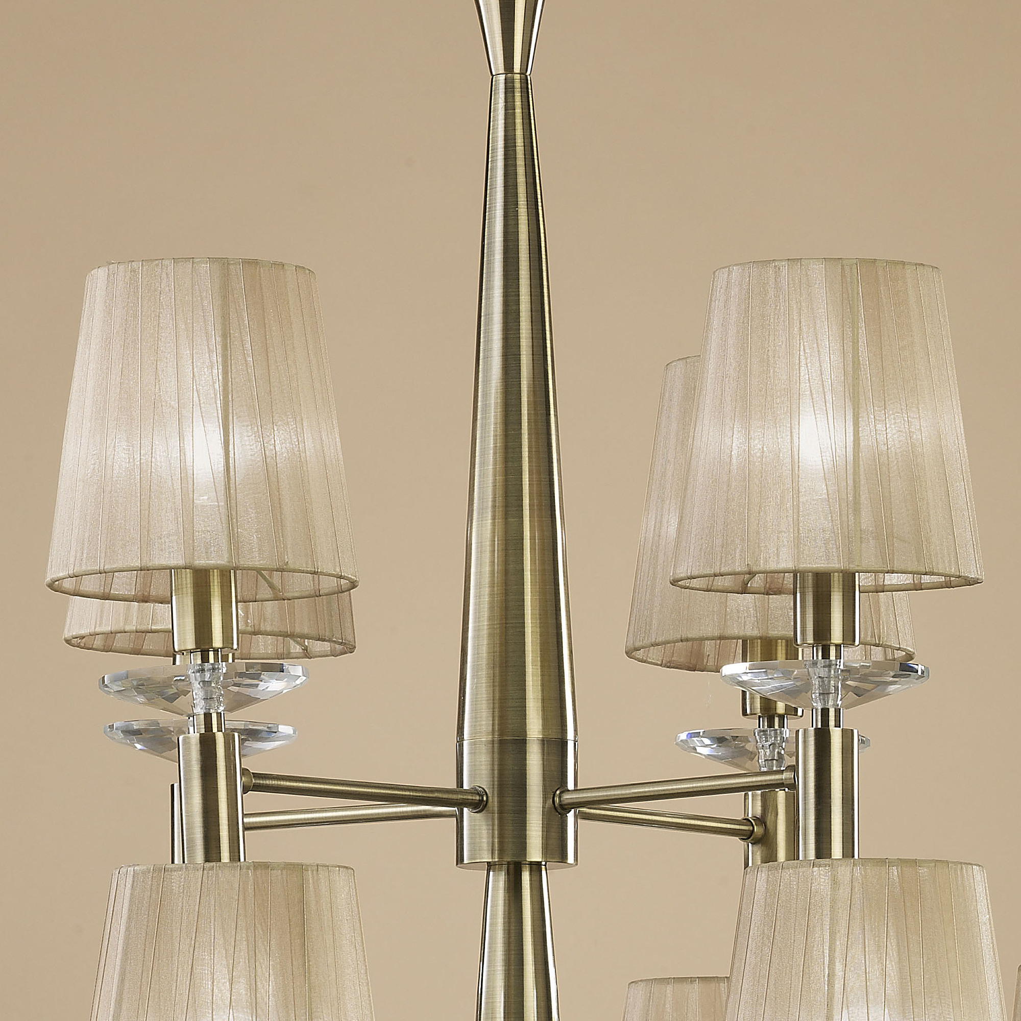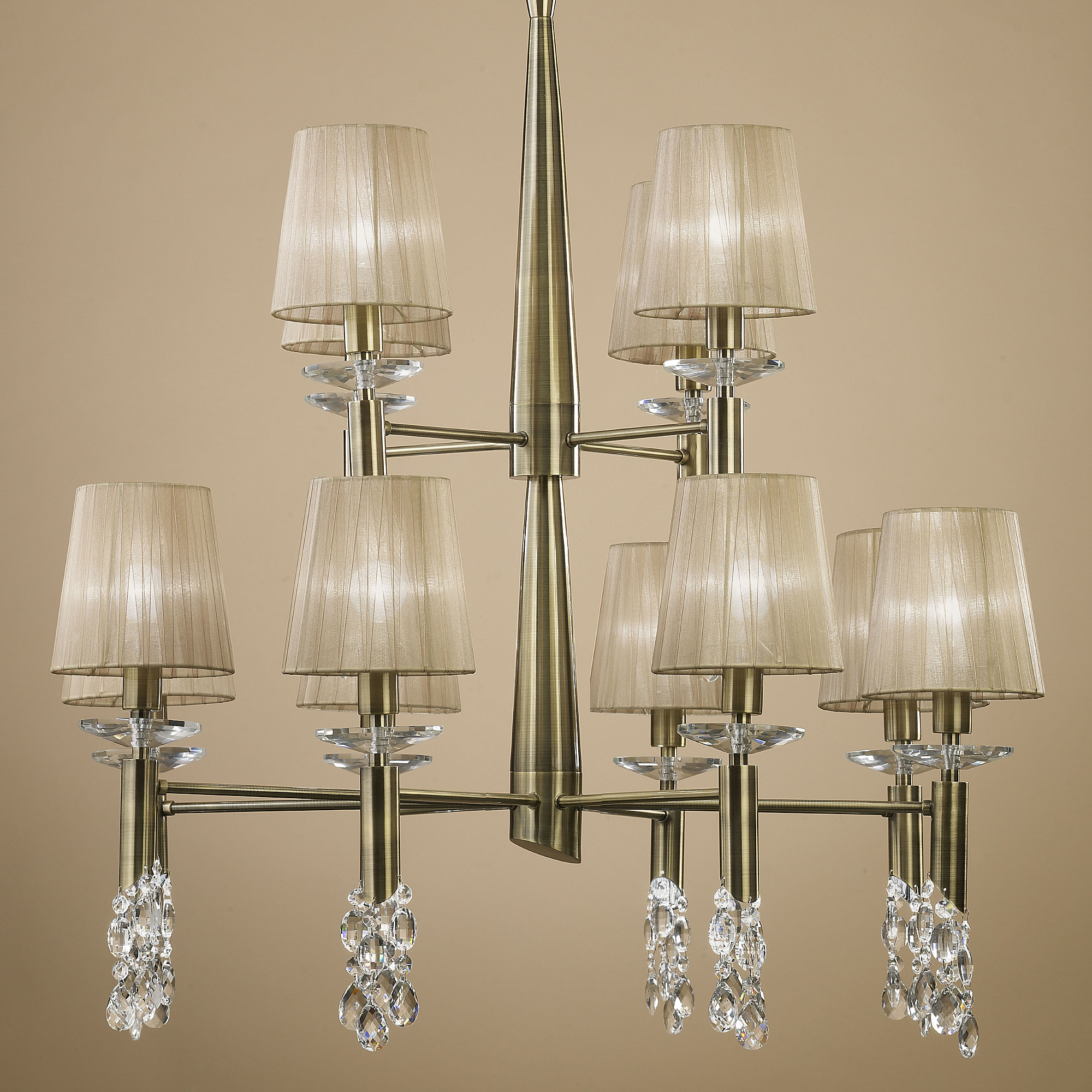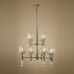 Допускается отличие страны-изготовителя, указанной в характеристиках. Линии производства могут находиться в нескольких государствах. Это не влияет на качество изготовления товара: все заводы данного бренда работают по общим стандартам, а готовые изделия проходят соответствующий контроль.Испания Коллекция Tiffany ЦветЦвет арматуры Античная латунь Цвет Бронза Материал арматуры Металл Цвет декора прозрачный Цвет плафона бежевый Материал декора Хрусталь Материал плафона Органза РазмерыВысота (мм) 1900 Диаметр (мм) 850 Высота минимальная (мм) 900 Возможность регулировки высоты Есть ЭлектрикаКоличество ламп (шт) 24 Цоколь E14, G9 Тип лампы Светодиодная, Энергосберегающая (КЛЛ) Лампочки в комплекте Нет в комплекте Возможность подключение диммера Есть Мощность лампы (Вт) 20+5 Общая мощность (Вт) 300 Напряжение (В) 220 Мощность эквивалентная лампе накаливания 1776 Дополнительная информацияСтепень защиты (IP) IP20 Место установки на потолок Вес (Кг) 11,21 Тип подвеса На цепи -