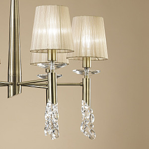 Допускается отличие страны-изготовителя, указанной в характеристиках. Линии производства могут находиться в нескольких государствах. Это не влияет на качество изготовления товара: все заводы данного бренда работают по общим стандартам, а готовые изделия проходят соответствующий контроль.Испания Коллекция Tiffany ЦветЦвет арматуры Античная латунь Цвет Бронза Материал арматуры Металл Цвет декора прозрачный Цвет плафона бежевый Материал декора Хрусталь Материал плафона Органза РазмерыВысота (мм) 1600 Диаметр (мм) 660 Высота минимальная (мм) 600 Возможность регулировки высоты Есть ЭлектрикаКоличество ламп (шт) 12 Цоколь E14, G9 Тип лампы Светодиодная, Энергосберегающая (КЛЛ) Лампочки в комплекте Нет в комплекте Возможность подключение диммера Есть Мощность лампы (Вт) 20+5 Общая мощность (Вт) 150 Напряжение (В) 220 Мощность эквивалентная лампе накаливания 888 Дополнительная информацияСтепень защиты (IP) IP20 Место установки на потолок Вес (Кг) 5,03 Тип подвеса На цепи -