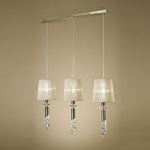 TIFFANY - это безусловно великолепная и редкая по своей необычности коллекция.Роскошные светильники пронизывают полупрозрачные блики нитей абажура, наряду сискрами хрустальных камней, даря индивидуальность вашему освещению.Она сочетает в себе патроны для ламп E27 или E14 на верхнем уровне, которыесопровождаются сдержанными патронами ламп G9, размещенными на нижнем уровне.Это ловкое дизайнерское решение усиливает блеск хрустальной резьбы TIFFANY, атакже освещает нижние поверхности. Полная коллекция доступна в полированномхроме с белыми абажурами и в античной латуни с мягким кремовым оттенком абажуров.С возможностью широкого выбора отделки Mantra создается гибкость для подбора идеального светового решения под нужды и стиль вашего интерьера.Предметы коллекции TIFFANY идеально дополнят интерьер, выполненный вклассическом стиле. Из-за своей фигурной резьбы на стеклянных абажурах предметыколлекции будут выигрышно выделяться в широком пространстве с большими окнами,отражая солнечные лучи.