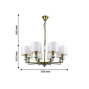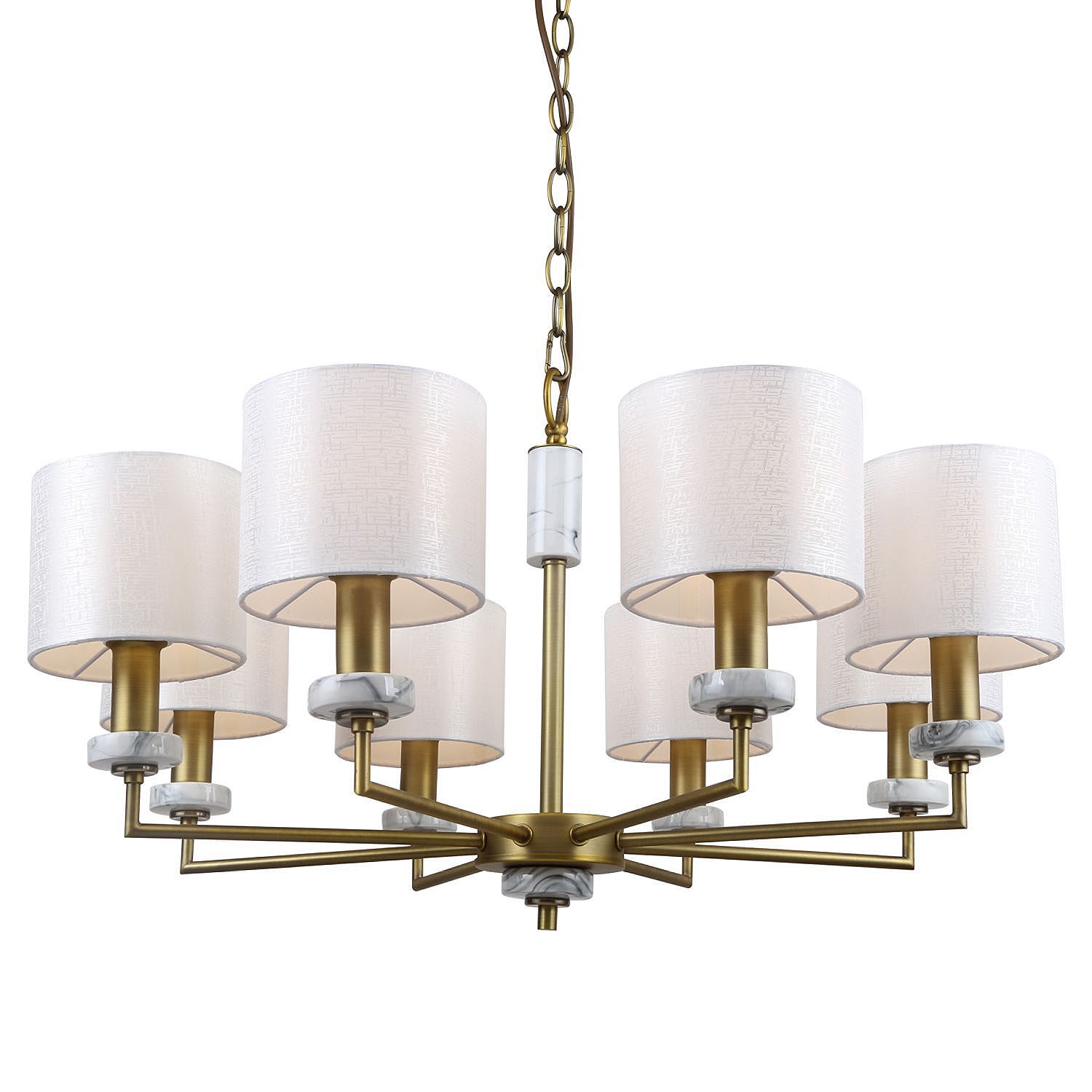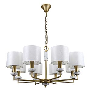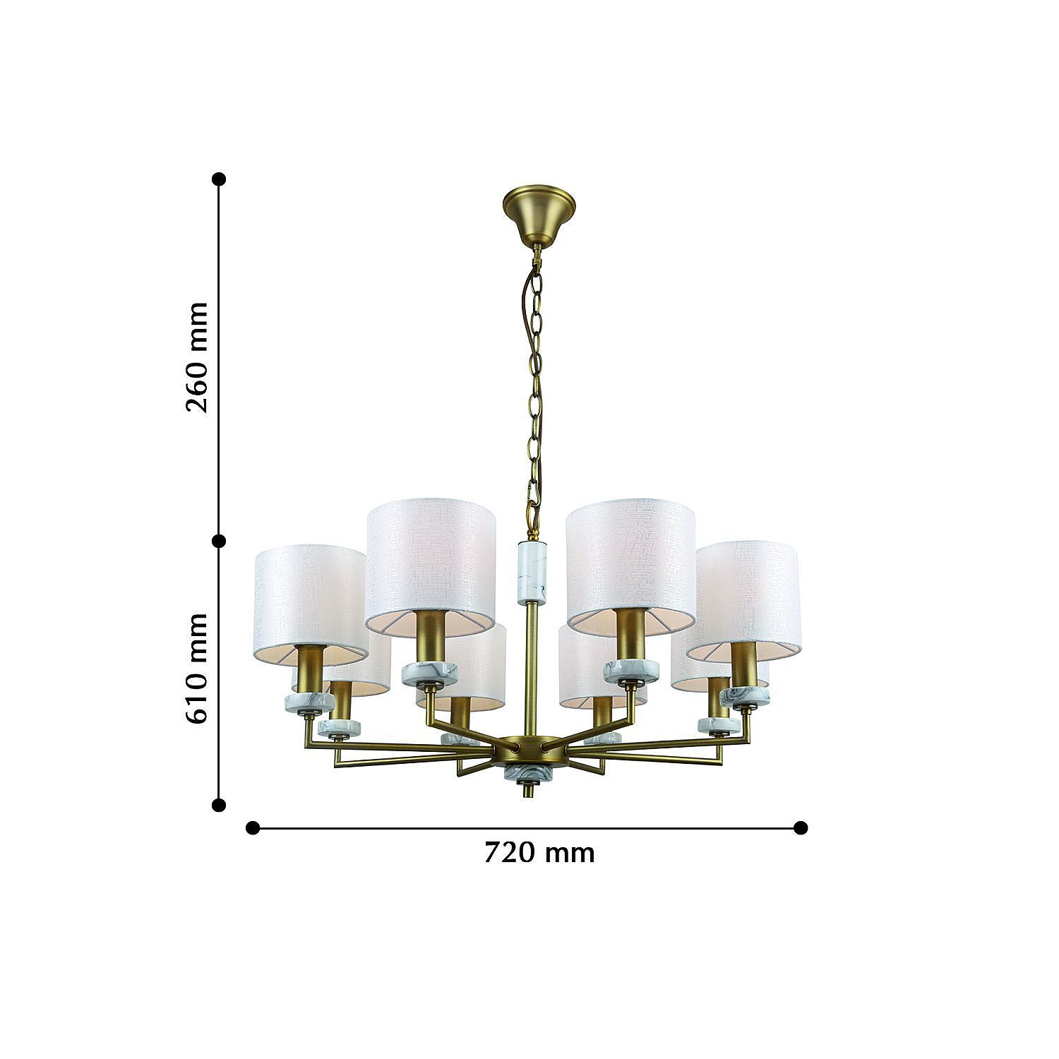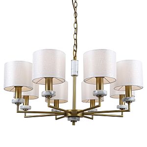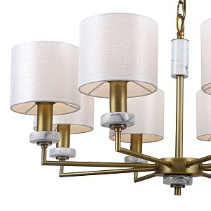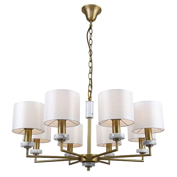 Допускается отличие страны-изготовителя, указанной в характеристиках. Линии производства могут находиться в нескольких государствах. Это не влияет на качество изготовления товара: все заводы данного бренда работают по общим стандартам, а готовые изделия проходят соответствующий контроль.Германия Коллекция Marbella ЦветЦвет арматуры Латунь Цвет Латунь Материал арматуры Металл, Мрамор Цвет плафона Белый Материал плафона Ткань РазмерыВысота (мм) 870 Диаметр (мм) 720 Высота минимальная (мм) 610 Ширина (мм) 720 ЭлектрикаКоличество ламп (шт) 8 Цоколь E14 Мощность лампы (Вт) 40 Напряжение (В) 220 Дополнительная информацияСпособ крепления Крюк Вес (Кг) 3 Тип подвеса На цепи -
