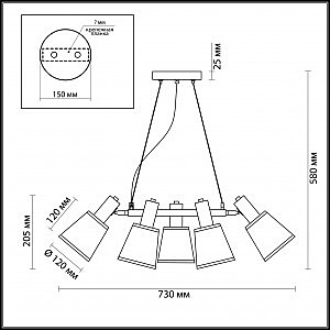 Допускается отличие страны-изготовителя, указанной в характеристиках. Линии производства могут находиться в нескольких государствах. Это не влияет на качество изготовления товара: все заводы данного бренда работают по общим стандартам, а готовые изделия проходят соответствующий контроль.Италия Коллекция Marcus ЦветЦвет арматуры Античная бронза Цвет Черный Материал арматуры Металл Цвет плафона Черный Материал плафона Текстиль РазмерыВысота (мм) 580 Диаметр (мм) 730 Ширина (мм) 730 ЭлектрикаКоличество ламп (шт) 5 Цоколь E14 Тип лампы Накаливания Мощность лампы (Вт) 60 Общая мощность (Вт) 300 Напряжение (В) 220 Дополнительная информацияСпособ крепления Планка Степень защиты (IP) IP20 Вес (Кг) 2,334 Тип подвеса На тросах -