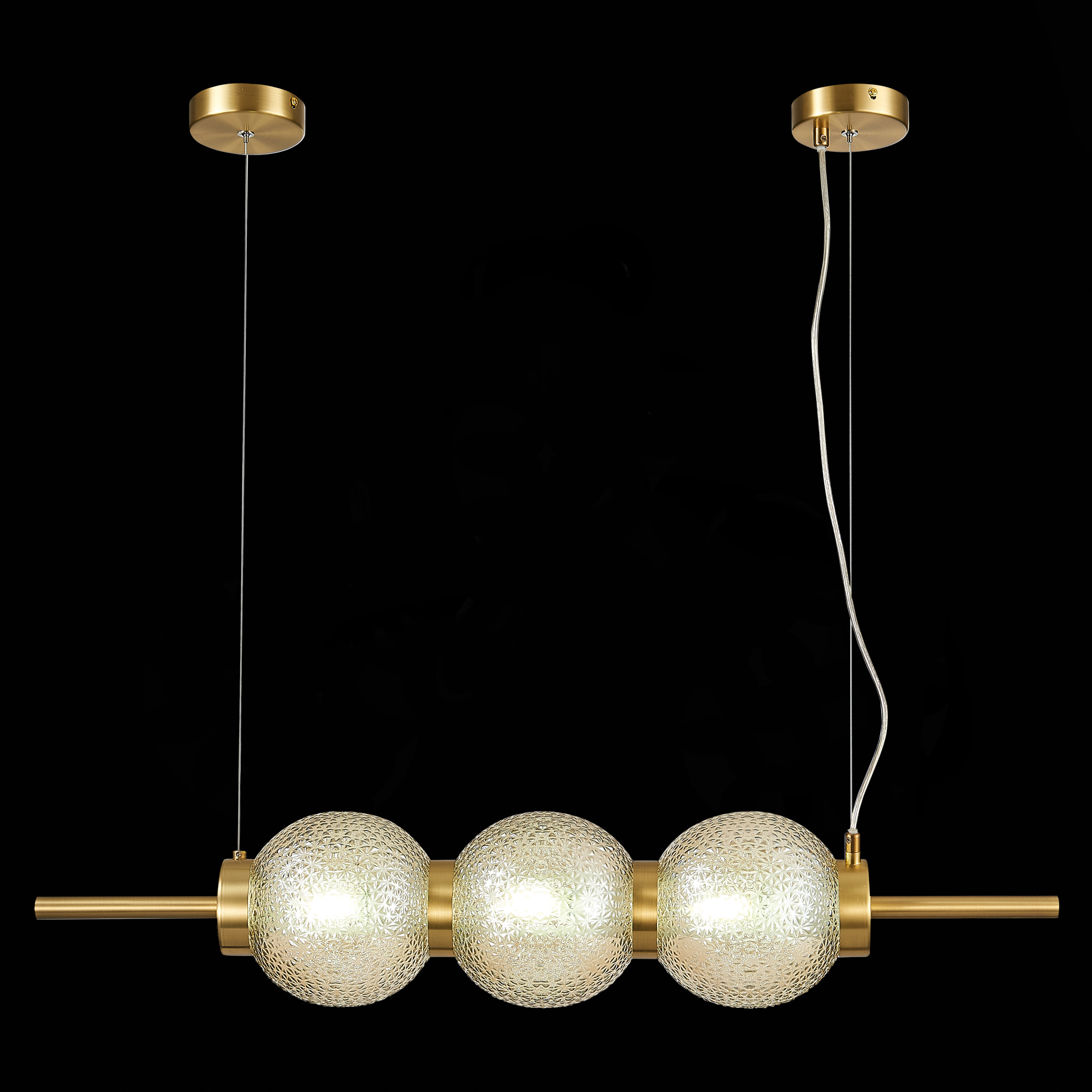 Допускается отличие страны-изготовителя, указанной в характеристиках. Линии производства могут находиться в нескольких государствах. Это не влияет на качество изготовления товара: все заводы данного бренда работают по общим стандартам, а готовые изделия проходят соответствующий контроль.Италия Коллекция Marena ЦветЦвет арматуры Латунь Цвет Латунь Материал арматуры Металл Цвет плафона коньячный Материал плафона Стекло РазмерыВысота (мм) 1200 Длина (мм) 830 Ширина (мм) 165 ЭлектрикаКоличество ламп (шт) 3 Цоколь E14 Тип лампы Накаливания Мощность лампы (Вт) 40 Общая мощность (Вт) 120 Площадь освещения 6 Дополнительная информацияСпособ крепления Планка Тип подвеса На тросах Количество подвесов Одиночный подвес -