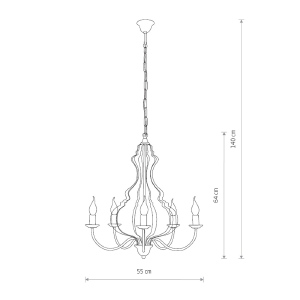 Допускается отличие страны-изготовителя, указанной в характеристиках. Линии производства могут находиться в нескольких государствах. Это не влияет на качество изготовления товара: все заводы данного бренда работают по общим стандартам, а готовые изделия проходят соответствующий контроль.Польша Коллекция Margaret ЦветЦвет арматуры Белый Цвет Белый Материал арматуры Сталь Цвет плафона Белый Материал плафона Металл РазмерыВысота (мм) 1400 Диаметр (мм) 550 Высота минимальная (мм) 640 Ширина (мм) 600 ЭлектрикаКоличество ламп (шт) 5 Цоколь E14 Тип лампы Накаливания Мощность лампы (Вт) 60 Общая мощность (Вт) 300 Напряжение (В) 220 Дополнительная информацияСтепень защиты (IP) IP20 Место установки на потолок Вес (Кг) 2,04 Тип подвеса На цепи -