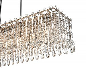 Допускается отличие страны-изготовителя, указанной в характеристиках. Линии производства могут находиться в нескольких государствах. Это не влияет на качество изготовления товара: все заводы данного бренда работают по общим стандартам, а готовые изделия проходят соответствующий контроль.Польша Коллекция Marisa ЦветЦвет арматуры Хром Цвет Хром Материал арматуры Металл Цвет плафона прозрачный Материал плафона Хрусталь РазмерыВысота (мм) 1030 Длина (мм) 850 Ширина (мм) 240 ЭлектрикаКоличество ламп (шт) 7 Цоколь G9 Тип лампы Накаливания Мощность лампы (Вт) 35 Общая мощность (Вт) 240 Напряжение (В) 220 Дополнительная информацияВес (Кг) 6,85 Тип подвеса На цепи -