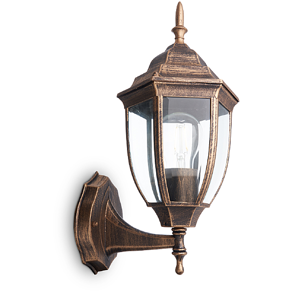 Светильник садово-парковый, серии "Марсель" (НБУ) FERON PL6001 1*60W, E27, 230V, IP44, цвет черное золото, 6-и гранник, на стену вверх, 190*165*380мм