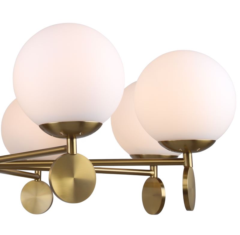 Люстра на штанге из коллекции Marsela выполнена из металла, гальванизированного в цвет бронзы, и декорирована белыми стеклянными матовыми плафонами, а также металлическими медальонами, гальванизированными в цвет арматуры. Премиальное качество и неповторимыи? дизаи?н светильников идеально подои?дут в современные и дизайнерские интерьеры.