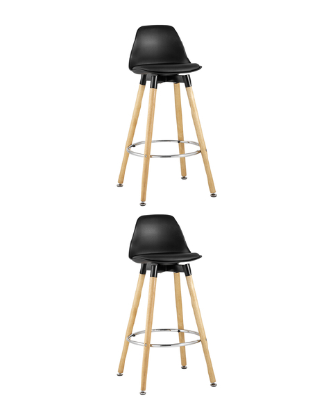 Комплект из двух барных стульев Мартин черный сиденье пластик, экокожа, деревянные ножки, хром 2 шт