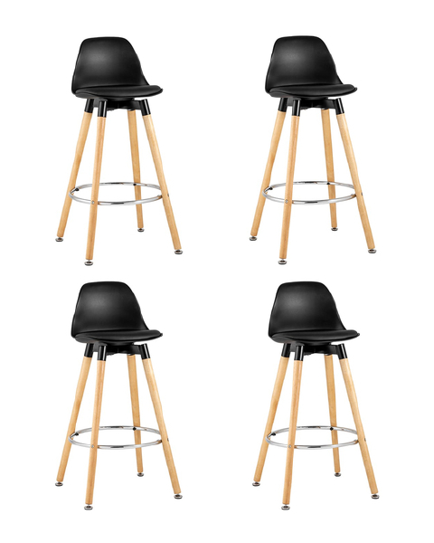 Комплект из четырех стульев Мартин черный, PU-кожа, деревянные ножки, опорная планка-подножка с лаконичным дизайном для сдержанных интерьеров в стиле модерн или минимализм