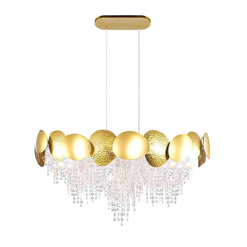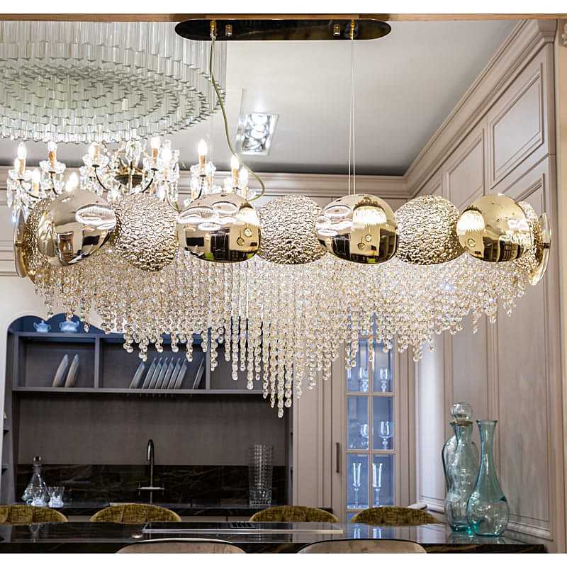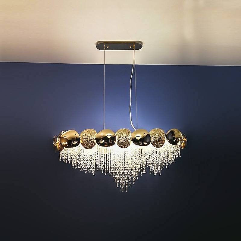 Допускается отличие страны-изготовителя, указанной в характеристиках. Линии производства могут находиться в нескольких государствах. Это не влияет на качество изготовления товара: все заводы данного бренда работают по общим стандартам, а готовые изделия проходят соответствующий контроль.Италия Коллекция Mastery ЦветЦвет арматуры Золото Цвет Золото Материал арматуры Металл Цвет плафона прозрачный Материал плафона Хрусталь РазмерыВысота (мм) 500 Длина (мм) 1200 ЭлектрикаКоличество ламп (шт) 14 Цоколь G9 Мощность лампы (Вт) 20 Напряжение (В) 220 Дополнительная информацияТип подвеса На тросах -