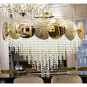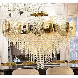 Допускается отличие страны-изготовителя, указанной в характеристиках. Линии производства могут находиться в нескольких государствах. Это не влияет на качество изготовления товара: все заводы данного бренда работают по общим стандартам, а готовые изделия проходят соответствующий контроль.Италия Коллекция Mastery ЦветЦвет арматуры Золото Цвет Золото Материал арматуры Металл Цвет плафона прозрачный Материал плафона Хрусталь РазмерыВысота (мм) 550 Диаметр (мм) 800 Ширина (мм) 800 ЭлектрикаКоличество ламп (шт) 18 Цоколь G9 Мощность лампы (Вт) 20 Напряжение (В) 220 -