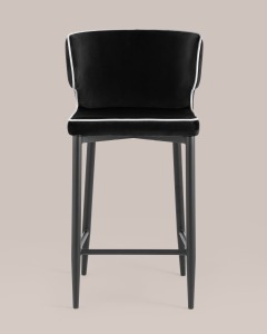Стул полубарный Матео с кантом велюр черный ножки металл черные