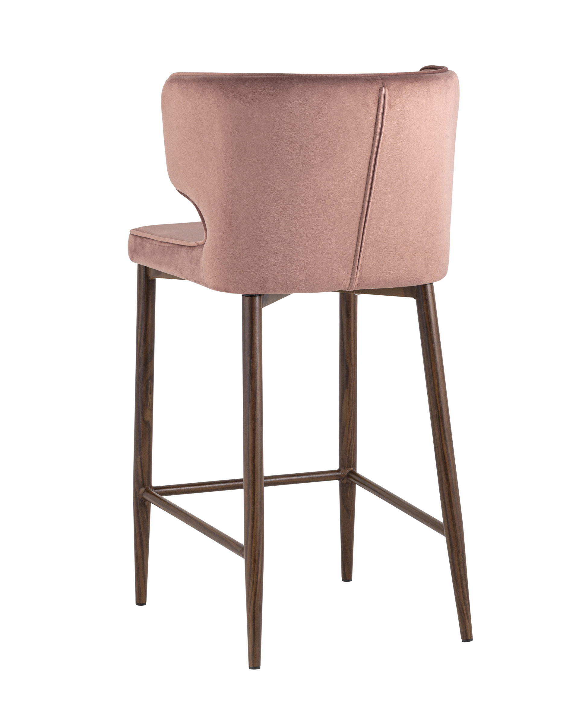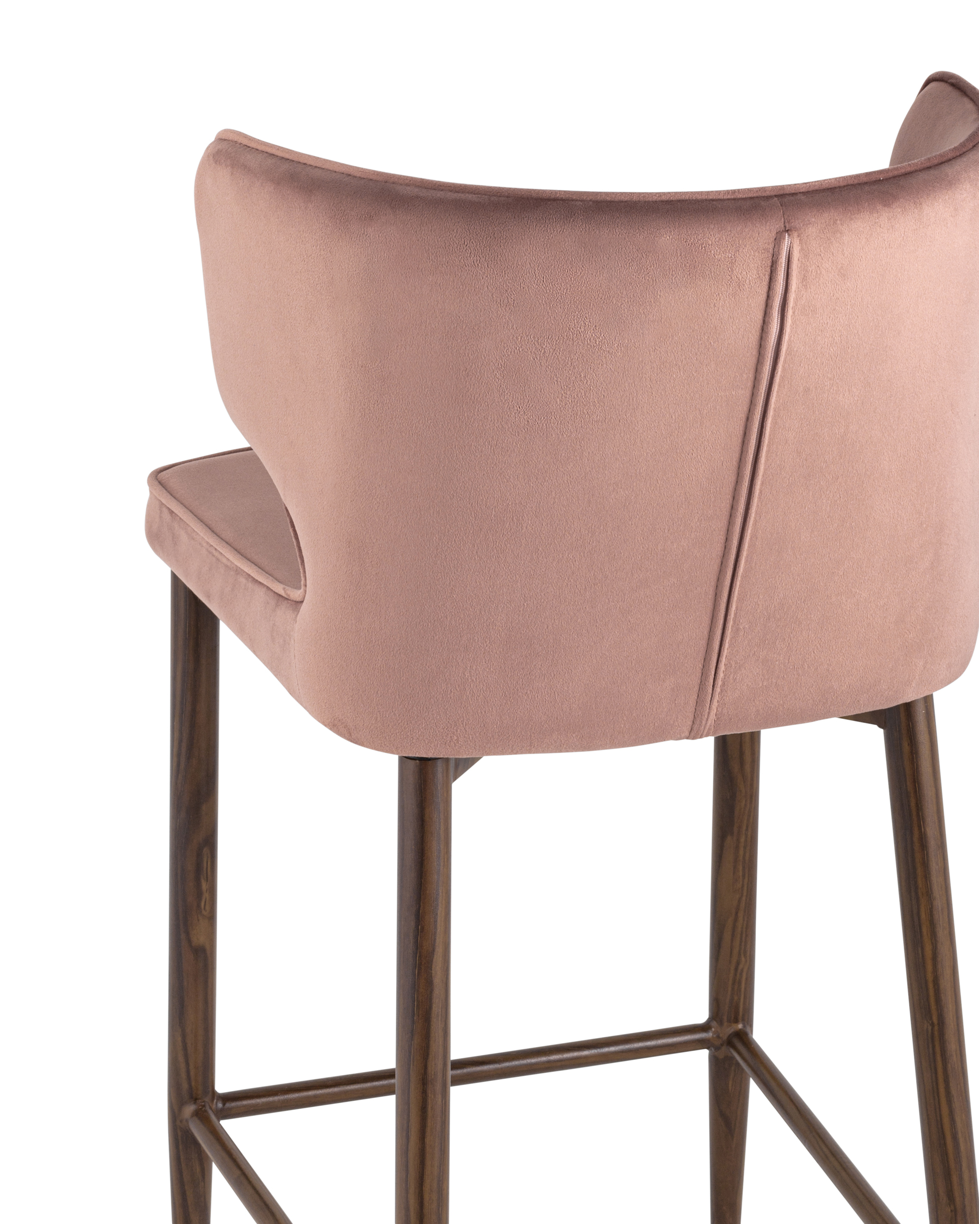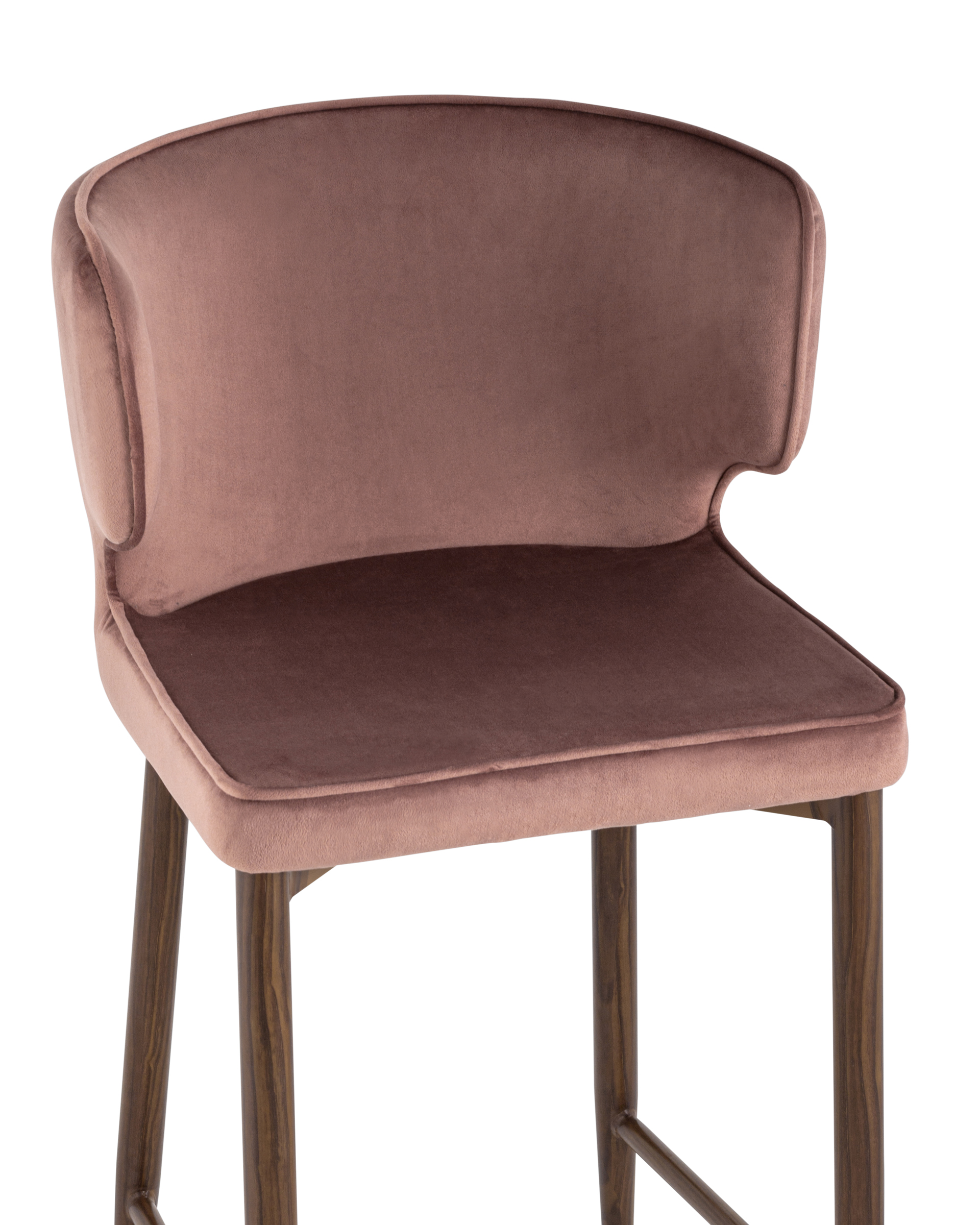 <p>Оптимальное сочетание созданного дизайнером образа и высокой практичности достигается за счет мягких округлых форм, сглаженных линий и комплектующих материалов превосходного качества.</p><p>Мягкая обивка выполнена из велюра - прочного износостойкого материала. Прямые металлические ножки, стилизованные под темное дерево, имеют нестандартную форму в виде перевернутого конуса, поэтому обеспечивают хорошую устойчивость и делают стул оригинальным. Удобная подножка позволяет расположиться максимально комфортно.</p><p>Оригинальная форма спинки с выступающими элементами создает ощущение уюта. Изделие прекрасно дополнит интерьер кухни или кафе.</p>