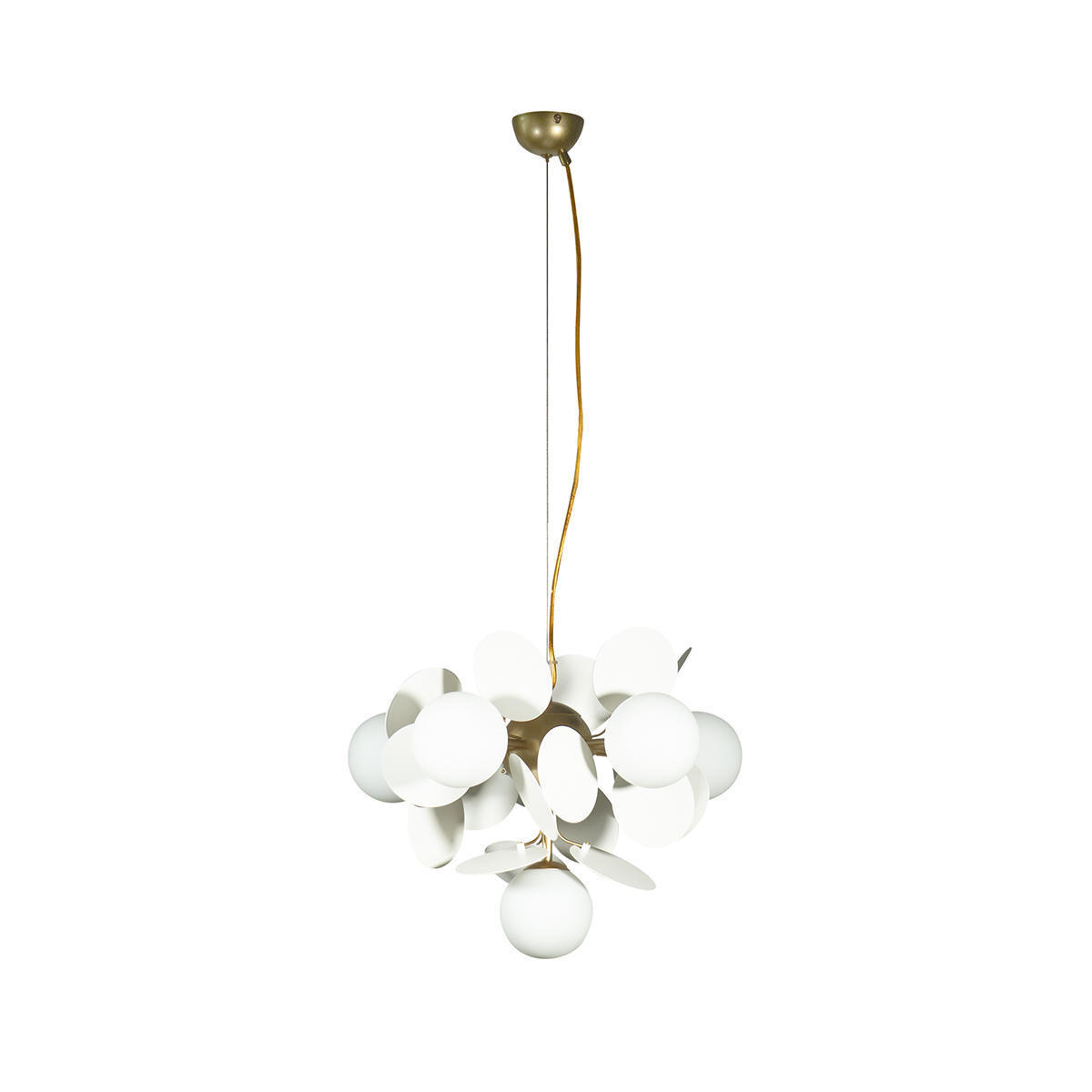 Допускается отличие страны-изготовителя, указанной в характеристиках. Линии производства могут находиться в нескольких государствах. Это не влияет на качество изготовления товара: все заводы данного бренда работают по общим стандартам, а готовые изделия проходят соответствующий контроль.Испания Коллекция Matisse ЦветЦвет арматуры Золото Цвет Золото Материал арматуры Металл Цвет плафона Белый Материал плафона Стекло РазмерыВысота (мм) 500 Диаметр (мм) 350 Ширина (мм) 350 ЭлектрикаКоличество ламп (шт) 6 Цоколь G9 Тип лампы Светодиодная Лампочки в комплекте Нет в комплекте Мощность лампы (Вт) 5 Общая мощность (Вт) 30 Напряжение (В) 220 Площадь освещения 15 Дополнительная информацияСпособ крепления Планка Степень защиты (IP) IP20 Место установки на потолок Вес (Кг) 2,5 Тип подвеса На тросах -