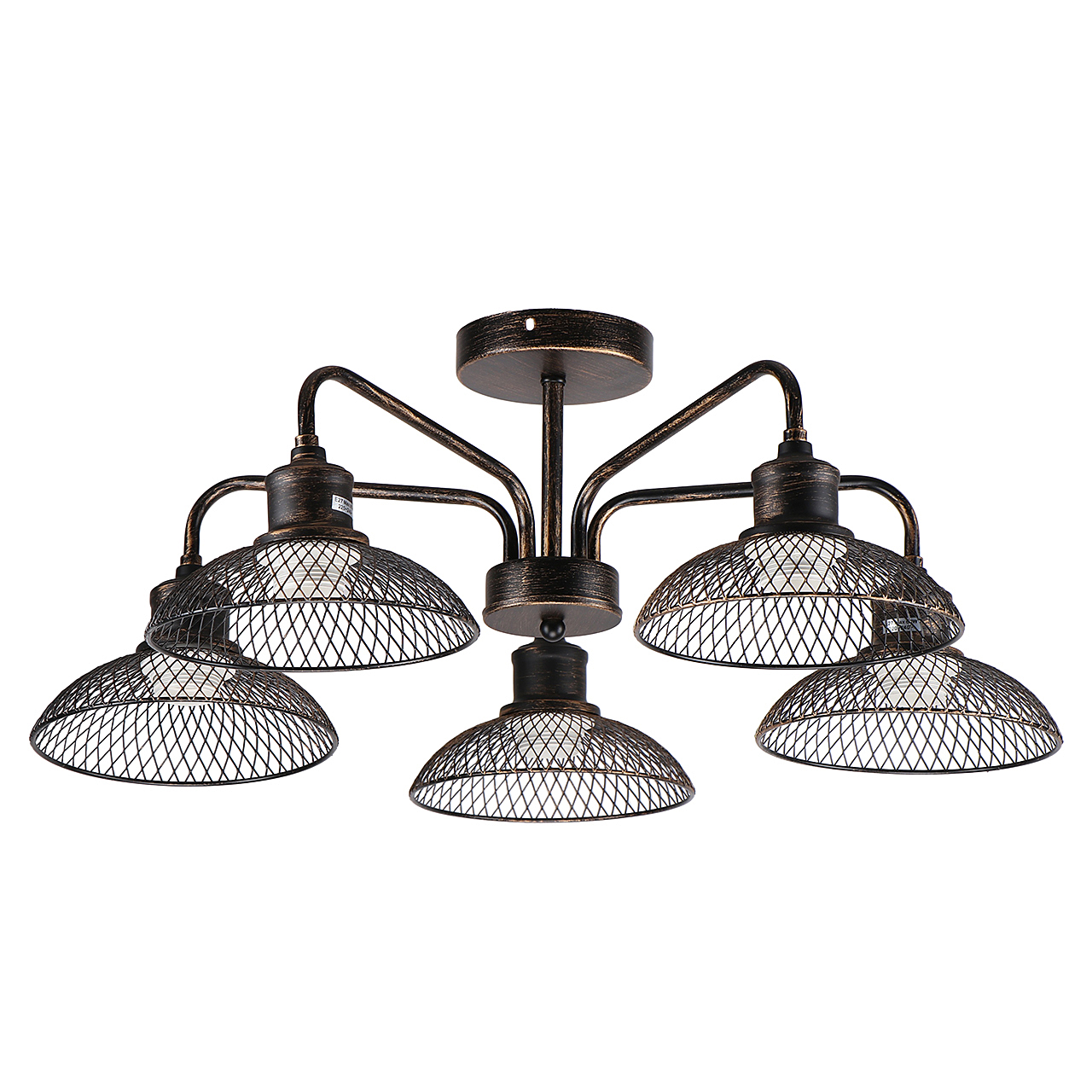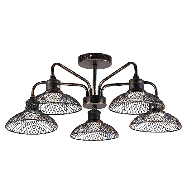 Допускается отличие страны-изготовителя, указанной в характеристиках. Линии производства могут находиться в нескольких государствах. Это не влияет на качество изготовления товара: все заводы данного бренда работают по общим стандартам, а готовые изделия проходят соответствующий контроль.Германия ЦветЦвет арматуры Бронза Старая Цвет Бронза Материал арматуры Металл Цвет плафона бронза Материал плафона Металл РазмерыВысота (мм) 225 Диаметр (мм) 640 Ширина (мм) 640 ЭлектрикаКоличество ламп (шт) 5 Цоколь E27 Мощность лампы (Вт) 60 Общая мощность (Вт) 300 Напряжение (В) 220 -