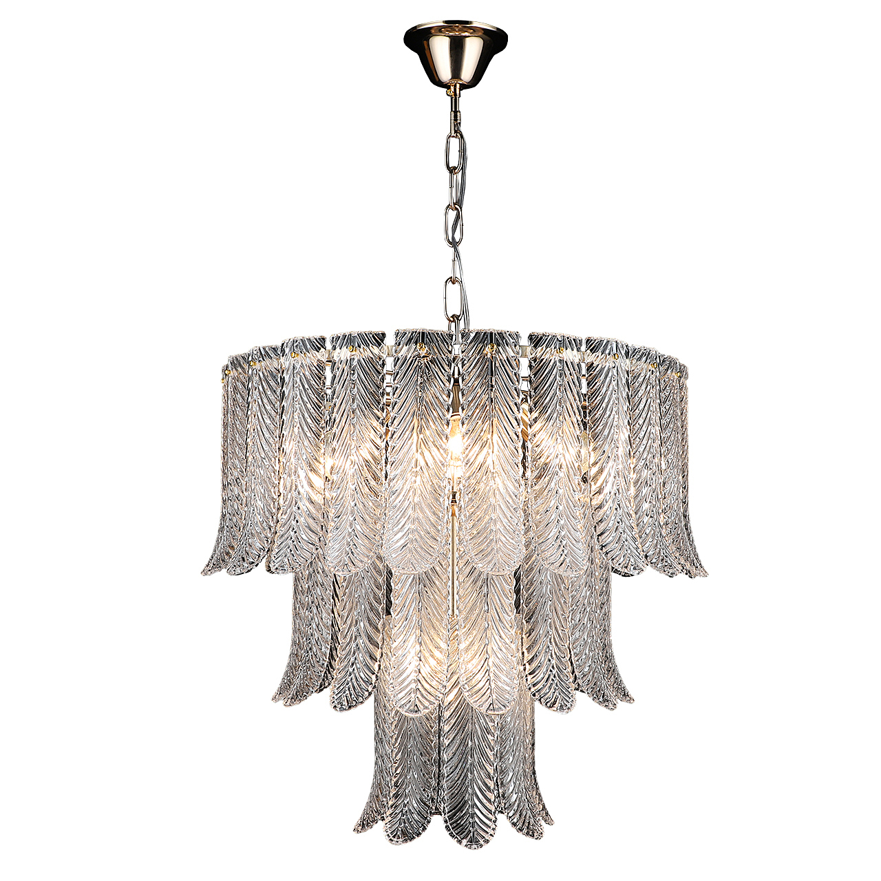 Допускается отличие страны-изготовителя, указанной в характеристиках. Линии производства могут находиться в нескольких государствах. Это не влияет на качество изготовления товара: все заводы данного бренда работают по общим стандартам, а готовые изделия проходят соответствующий контроль.Германия ЦветЦвет арматуры Золото Цвет Золото Материал арматуры Металл Цвет плафона Прозрачный с легкой тонировкой Материал плафона Металл, Хрусталь РазмерыВысота (мм) 450 Диаметр (мм) 500 Ширина (мм) 500 ЭлектрикаКоличество ламп (шт) 8 Цоколь E27 Мощность лампы (Вт) 60 Общая мощность (Вт) 480 Напряжение (В) 220 Дополнительная информацияТип подвеса На цепи -