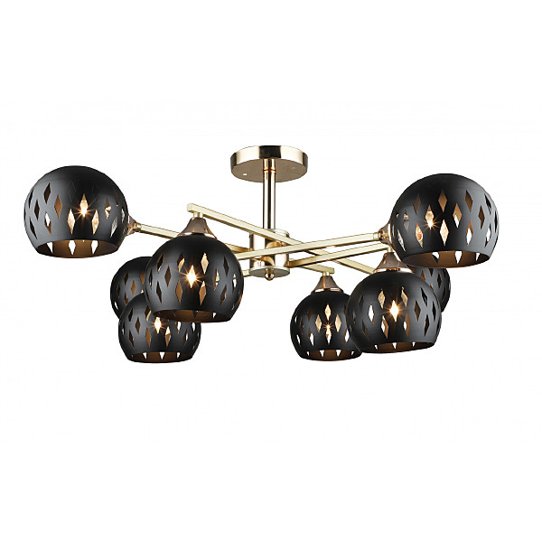 Допускается отличие страны-изготовителя, указанной в характеристиках. Линии производства могут находиться в нескольких государствах. Это не влияет на качество изготовления товара: все заводы данного бренда работают по общим стандартам, а готовые изделия проходят соответствующий контроль.Германия ЦветЦвет арматуры Золото, французское золото Цвет Черный Материал арматуры Металл Цвет плафона Черный Материал плафона Металл РазмерыВысота (мм) 305 Диаметр (мм) 770 Ширина (мм) 770 ЭлектрикаКоличество ламп (шт) 8 Цоколь E27 Мощность лампы (Вт) 60 Общая мощность (Вт) 480 Напряжение (В) 220 Дополнительная информацияСтепень защиты (IP) IP20 -