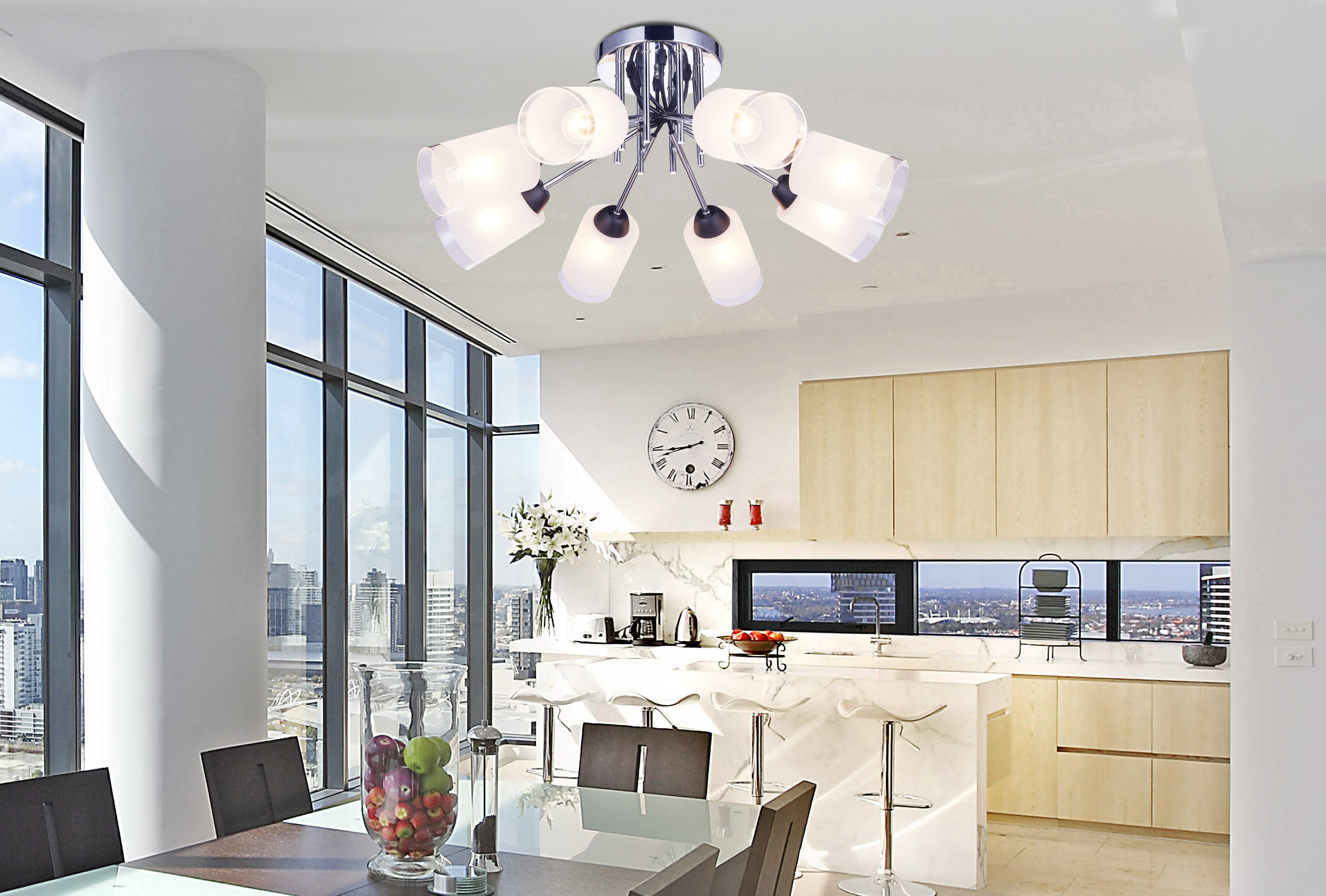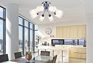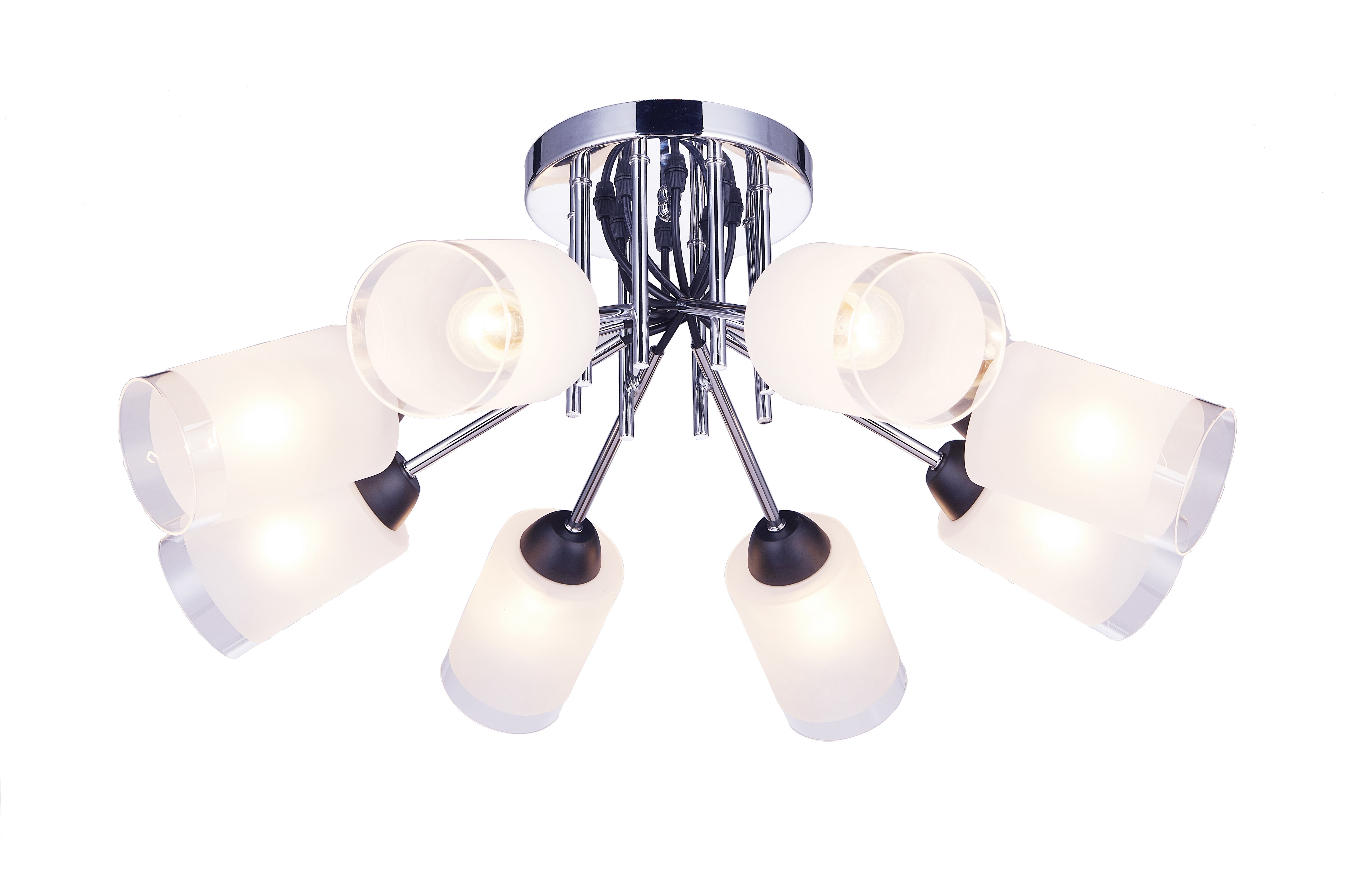 Допускается отличие страны-изготовителя, указанной в характеристиках. Линии производства могут находиться в нескольких государствах. Это не влияет на качество изготовления товара: все заводы данного бренда работают по общим стандартам, а готовые изделия проходят соответствующий контроль.Китай Коллекция Mekka ЦветЦвет арматуры Хром, Черный Цвет Хром Материал арматуры Металл, Стекло Цвет плафона Белый Материал плафона Стекло РазмерыВысота (мм) 280 Длина (мм) 680 Ширина (мм) 680 ЭлектрикаКоличество ламп (шт) 8 Цоколь E27 Мощность лампы (Вт) 60 Напряжение (В) 220 Площадь освещения 19,2 Дополнительная информацияСпособ крепления Планка Степень защиты (IP) IP20 Вес (Кг) 2,4 -