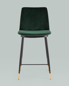 Стул полубарный Мелисса велюр зеленый ножки металл черные с золотым