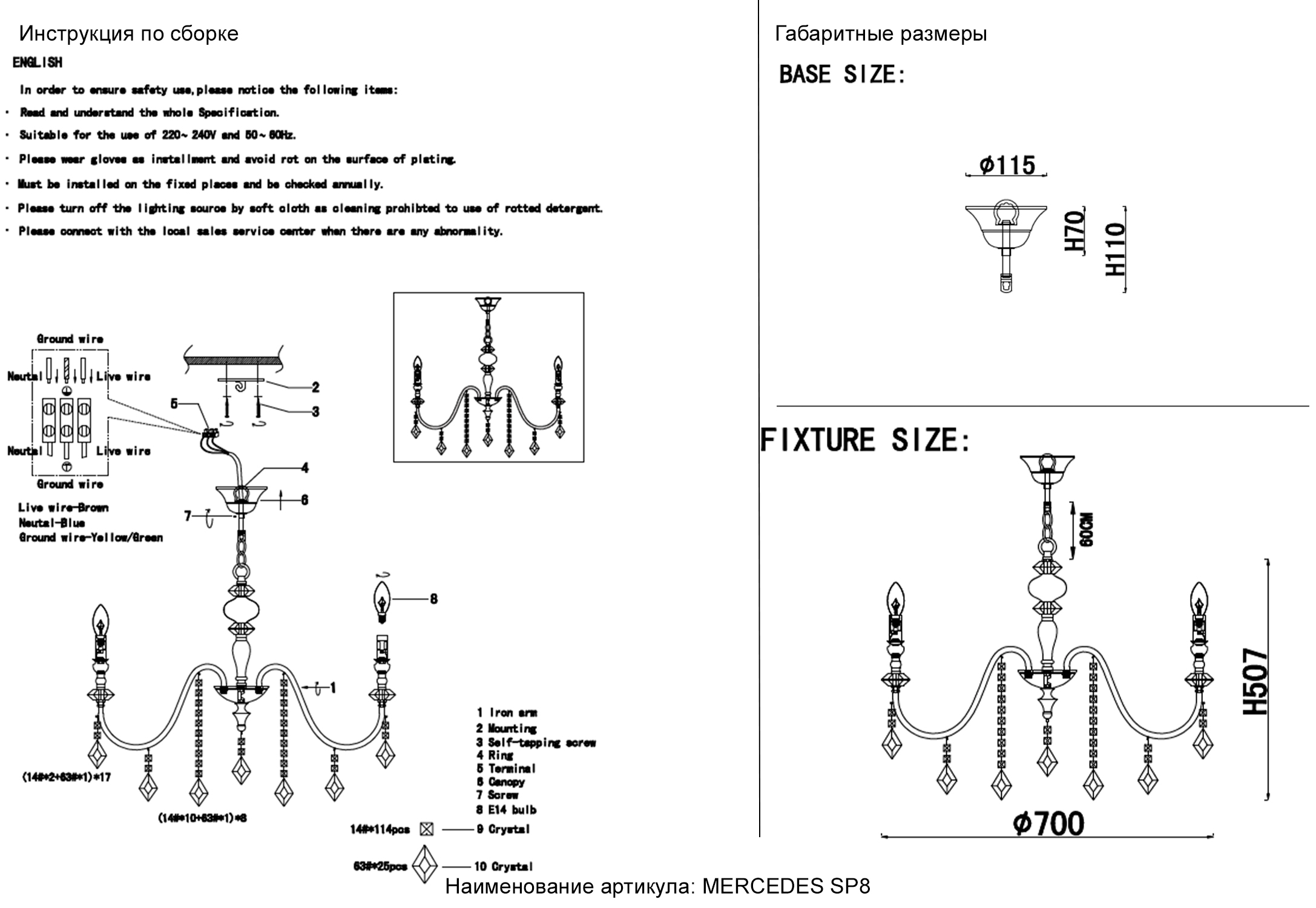 Производитель Crystal Lux Артикул MERCEDES SP8 GOLD/COLOR Страна