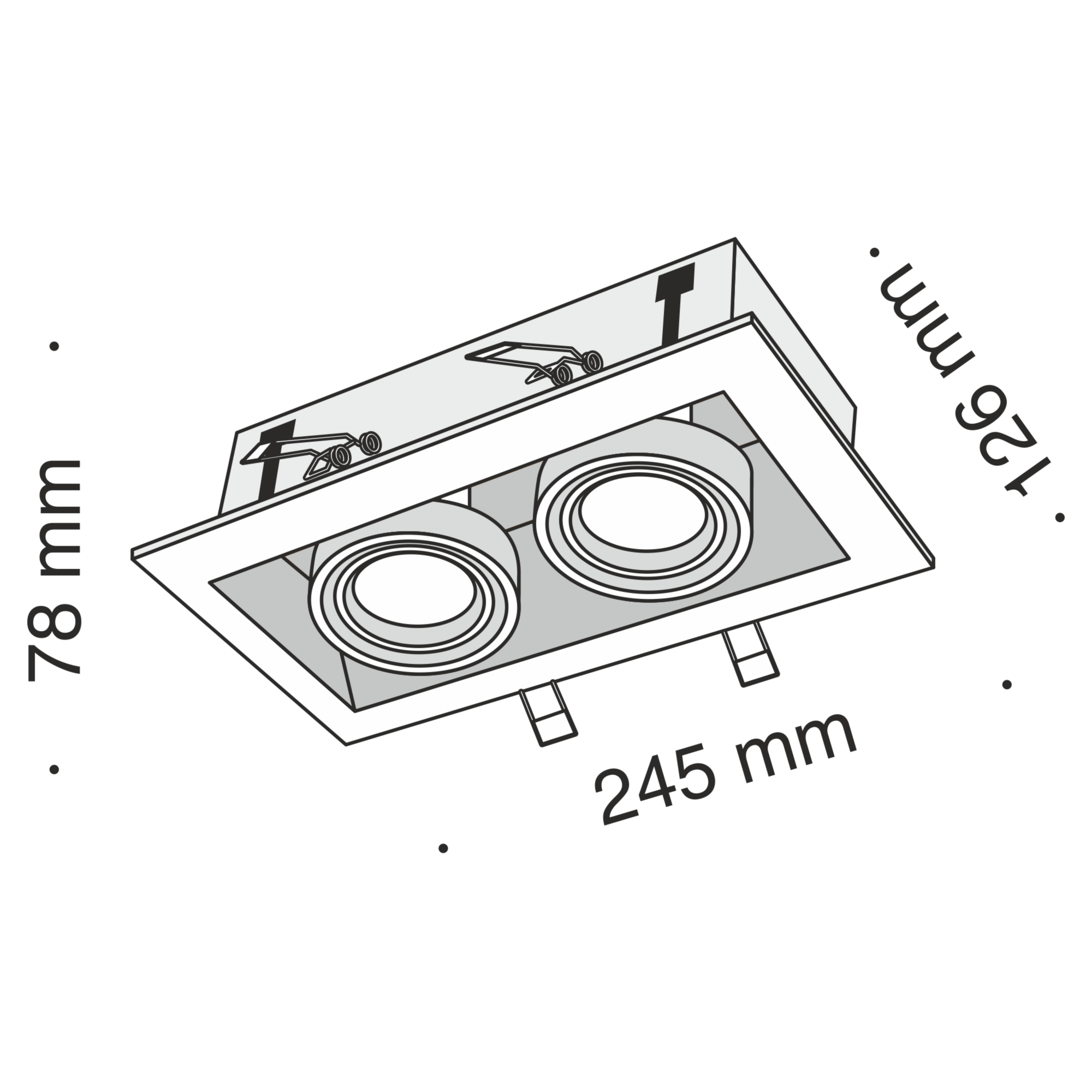 Допускается отличие страны-изготовителя, указанной в характеристиках. Линии производства могут находиться в нескольких государствах. Это не влияет на качество изготовления товара: все заводы данного бренда работают по общим стандартам, а готовые изделия проходят соответствующий контроль.Германия Коллекция Metal Modern ЦветЦвет арматуры Серебро Цвет Серебро Материал арматуры Металл РазмерыВысота (мм) 70 Ширина (мм) 245 Диаметр врезного отверстия (мм) 215*100 Глубина (мм) 125 ЭлектрикаКоличество ламп (шт) 2 Цоколь GU10 Лампочки в комплекте Нет в комплекте Мощность лампы (Вт) 50 Напряжение (В) 220 Дополнительная информацияСтепень защиты (IP) IP20 Вес (Кг) 0,45 -