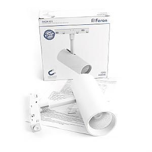 Светильник Трековый На Шинопровод, - (Дпо) Feron Mgn303, 10W, 4000К (Белый), 48V, 900Lm, Цвет Белый, Корпус Алюминий, Рассеиватель Поликарбонат, Вращение ?350градусов/?90градусов, 145*130*55 Мм