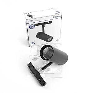 Светильник трековый на шинопровод, - (ДПО) FERON MGN303, 10W, 3000К (белый теплый), 48V, 900Lm, цвет черный, корпус алюминий, рассеиватель поликарбонат, вращение ?350градусов/?90градусов, 145*130*55 мм