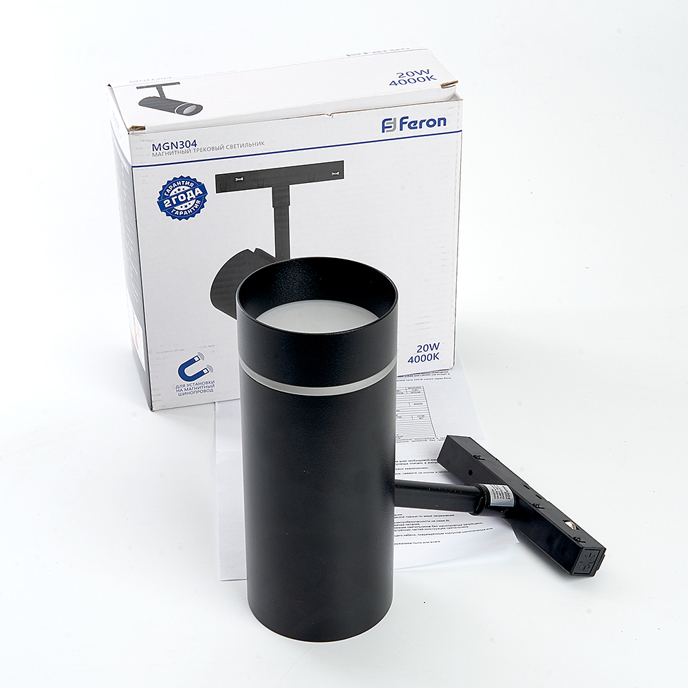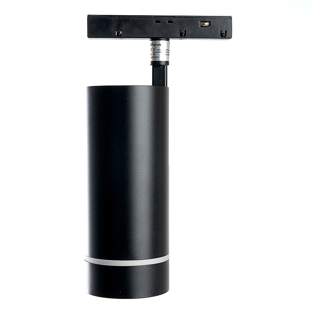 Светильник трековый на шинопровод, - (ДПО) FERON MGN304, 20W, 4000К (белый), 48V, 1600Lm, цвет черный, корпус алюминий, рассеиватель поликарбонат, вращение ?350градусов/?90градусов, 168*165*70 мм