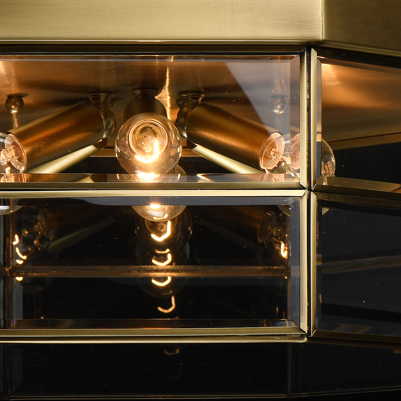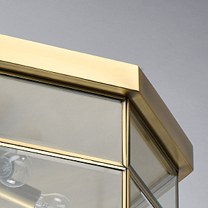 Основание из благородной латуни дополнено стеклянными сегментами в латунных рамках с четкой геометрией. Стекло полностью герметично, исключает образование зазоров.Компактные размеры по высоте идеальны для стандартных потолков.Большой диаметр светильника обеспечивает высокие параметры освещенности.Система отвода конденсата гарантирует долгий срок службы источников света.Замена традиционных ламп через специальные люк в створках стекла удобна в эксплуатации. IP 44 защита от влажности и пылиПолная семья для комплексного освещения интерьеров и ландшафтных зон.