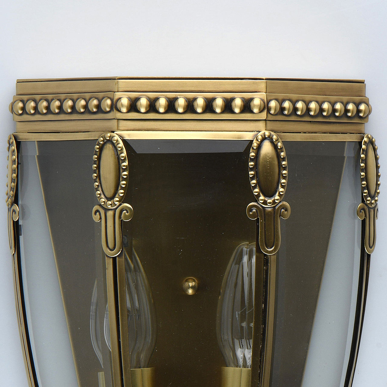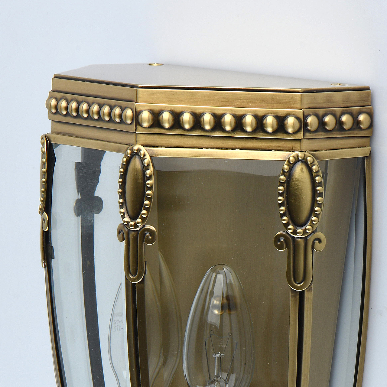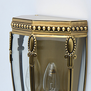 Основание из благородной латуни украшено декоративными элементами. Стекло полностью герметично, исключает образование зазоров.Система отвода конденсата гарантирует долгий срок службы источников света. IP 44 защита от влажности и пыли.Полная семья для комплексного освещения интерьеров и ландшафтных зон.