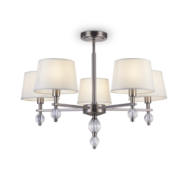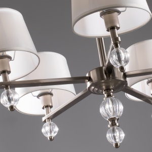 Допускается отличие страны-изготовителя, указанной в характеристиках. Линии производства могут находиться в нескольких государствах. Это не влияет на качество изготовления товара: все заводы данного бренда работают по общим стандартам, а готовые изделия проходят соответствующий контроль.Германия Коллекция Milena ЦветЦвет арматуры Никель Цвет Никель Материал арматуры Металл, Акрил Цвет плафона Белый Материал плафона Текстиль на ПВХ РазмерыВысота (мм) 480 Диаметр (мм) 680 Ширина (мм) 680 ЭлектрикаКоличество ламп (шт) 5 Цоколь E14 Лампочки в комплекте Нет в комплекте Мощность лампы (Вт) 60 Напряжение (В) 220 Дополнительная информацияСпособ крепления Планка Степень защиты (IP) IP20 Вес (Кг) 2,47 -