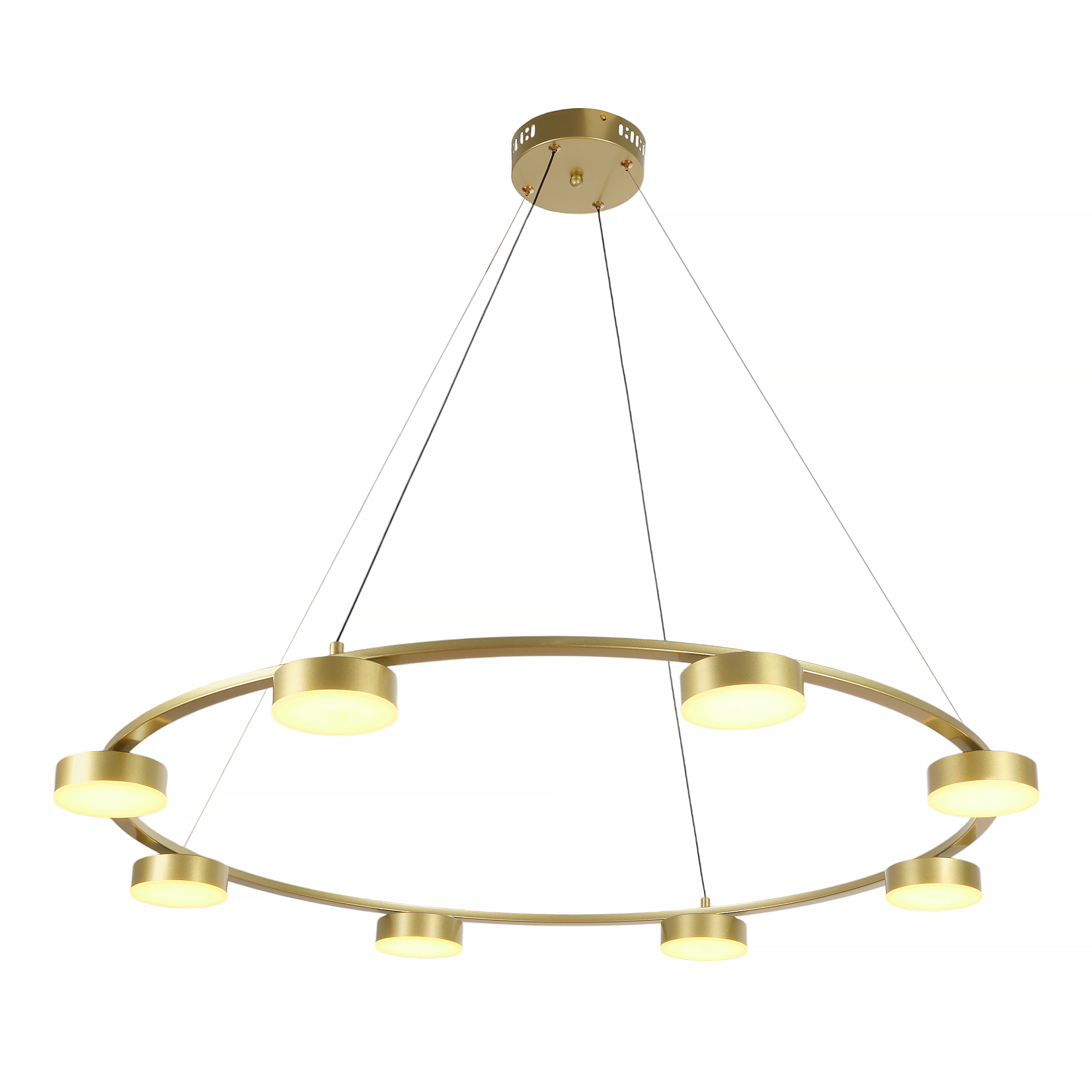 Допускается отличие страны-изготовителя, указанной в характеристиках. Линии производства могут находиться в нескольких государствах. Это не влияет на качество изготовления товара: все заводы данного бренда работают по общим стандартам, а готовые изделия проходят соответствующий контроль.Россия Коллекция Milla ЦветЦвет арматуры золотой Цвет Золото Материал арматуры Металл Цвет плафона Белый, золотой Материал плафона Акрил РазмерыВысота (мм) 1150 Длина (мм) 940 Диаметр (мм) 940 Высота минимальная (мм) 50 Ширина (мм) 940 ЭлектрикаКоличество ламп (шт) 8 Цоколь LED Лампочки в комплекте Лампы в комплекте Мощность лампы (Вт) 6,25 Общая мощность (Вт) 50 Напряжение (В) 220 Цветовая температура 3000 Площадь освещения 15 Дополнительная информацияСпособ крепления Планка Степень защиты (IP) IP20 Тип подвеса На тросах -