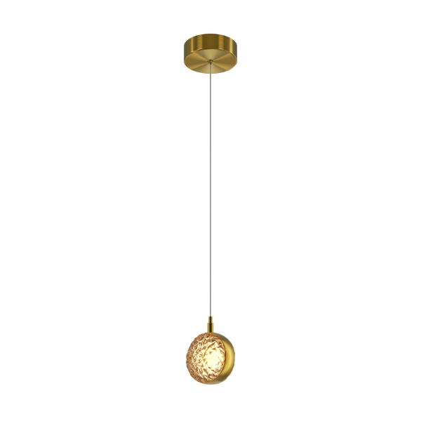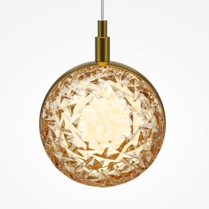Два цветовых сочетания: сатинированная арматура из металла в цвете латунь в комбинации со стеклянными плафонами янтарного оттенка или трендовый черный хром с глянцевым финишем в сочетании с тонированными светло-серыми плафонами. Источник света: LED. Цветовая температура 3000К, угол рассеивания 120 градусов. Провод длиной 3 м можно регулировать по высоте - светильник подходит для помещений с высокими потолками.