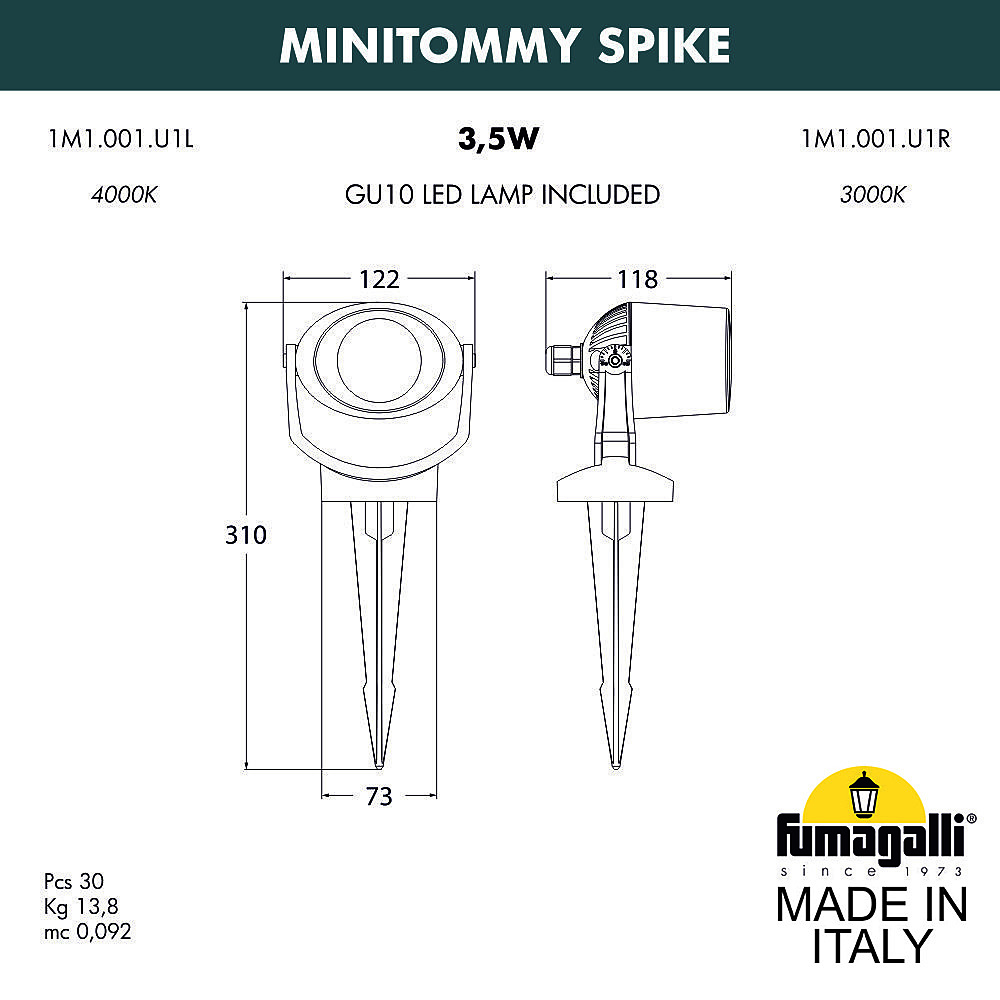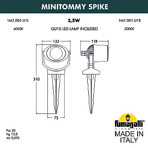 Допускается отличие страны-изготовителя, указанной в характеристиках. Линии производства могут находиться в нескольких государствах. Это не влияет на качество изготовления товара: все заводы данного бренда работают по общим стандартам, а готовые изделия проходят соответствующий контроль.Италия Коллекция Minitommy ЦветЦвет арматуры Черный Цвет Черный Материал арматуры Сверхпрочный полимер RESIN Цвет плафона матовый Материал плафона Полиметилметакрилат (оргстекло) РазмерыВысота (мм) 310 Диаметр (мм) 122 Ширина (мм) 122 Глубина (мм) 118 ЭлектрикаКоличество ламп (шт) 1 Цоколь GU10 Тип лампы Светодиодная Лампочки в комплекте Лампы в комплекте Мощность лампы (Вт) 4,5 Напряжение (В) 220 Дополнительная информацияСтепень защиты (IP) IP66 Вес (Кг) 0,7 -