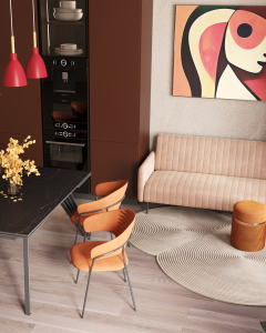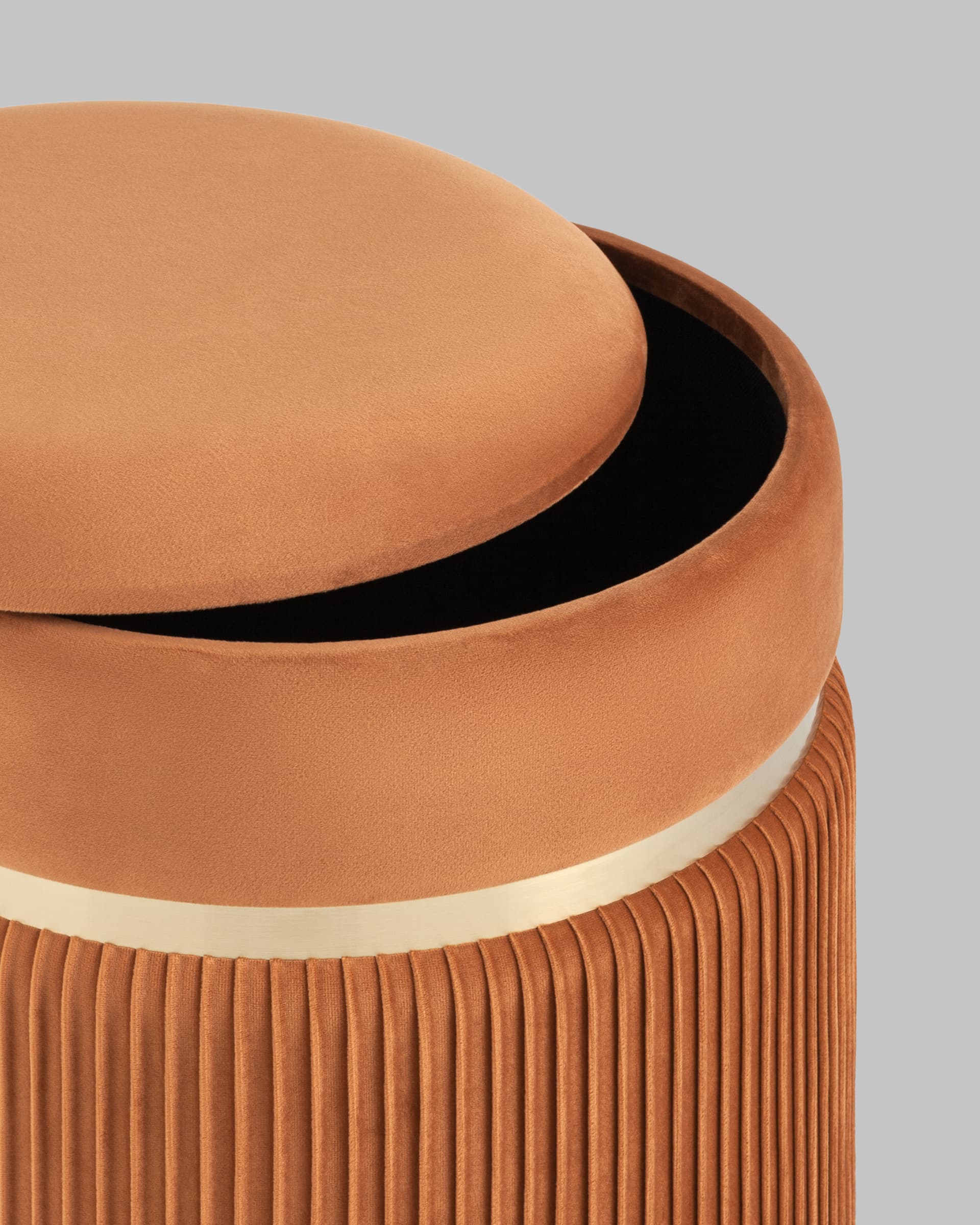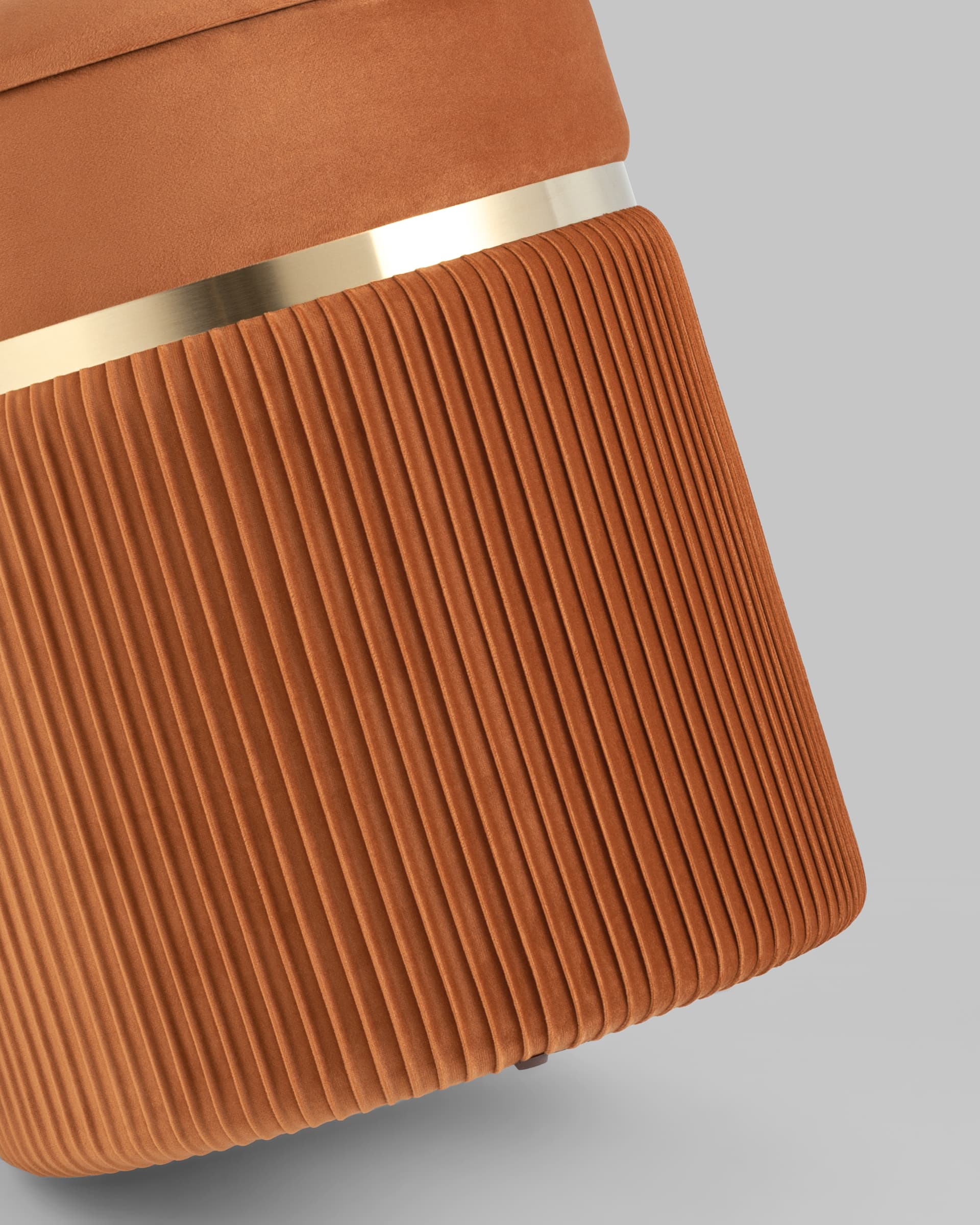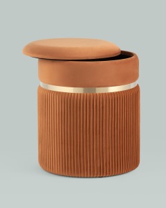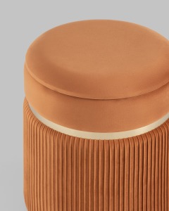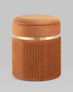 Пуф Миранда с ящиком велюр оранжевый с декоративным золотым ободком