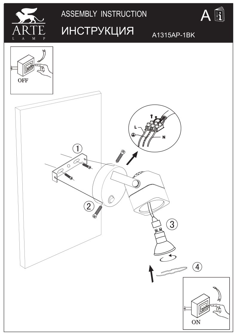 Производитель Arte Lamp Артикул A1315AP-1BK Страна