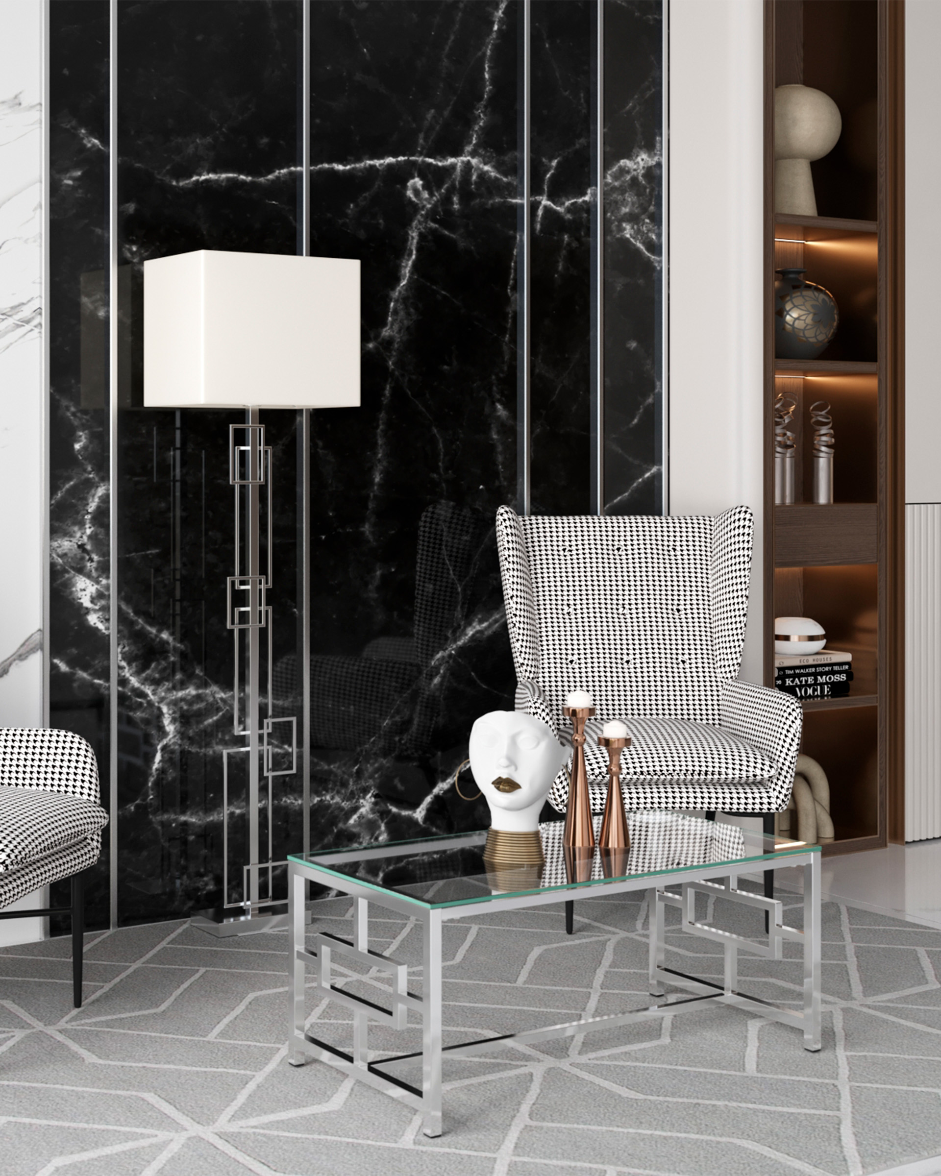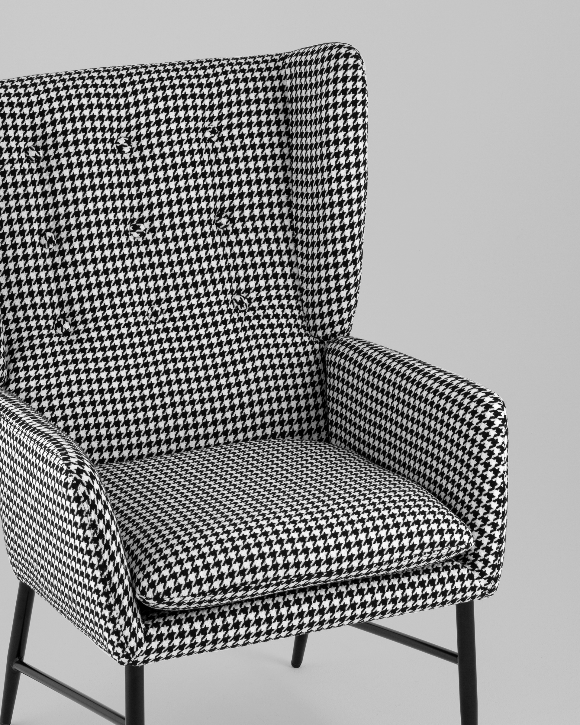 Кресло Мэйден гусиная лапка черно-белый мягкое тканевое