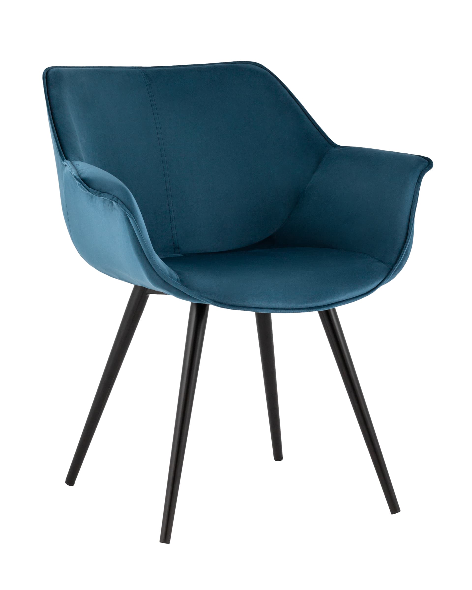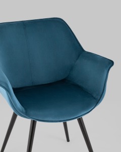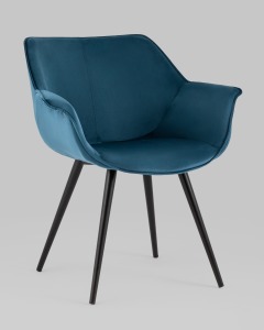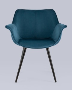 Стул с подлокотниками Мэйсон велюр пыльно-синий ножки из металла черные