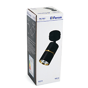 Светильник накладной под лампу, спот (-) FERON ML1861, GU10 35W, 230V, IP20, цвет черный-золото , корпус алюминий, 55*55*165