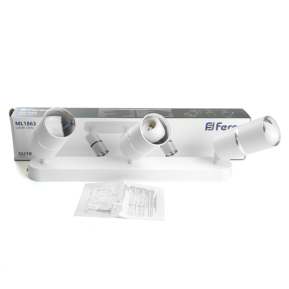 Светильник накладной под лампу, спот (-) FERON ML1863, GU10 3*35W, 230V, IP20, цвет белый-хром, корпус алюминий, 380*380*165