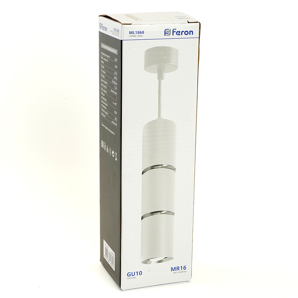 Светильник накладной под лампу, спот (-) FERON ML1868 , GU10 35W, 230V, IP20, цвет белый-хром, корпус алюминий, 55*55*180