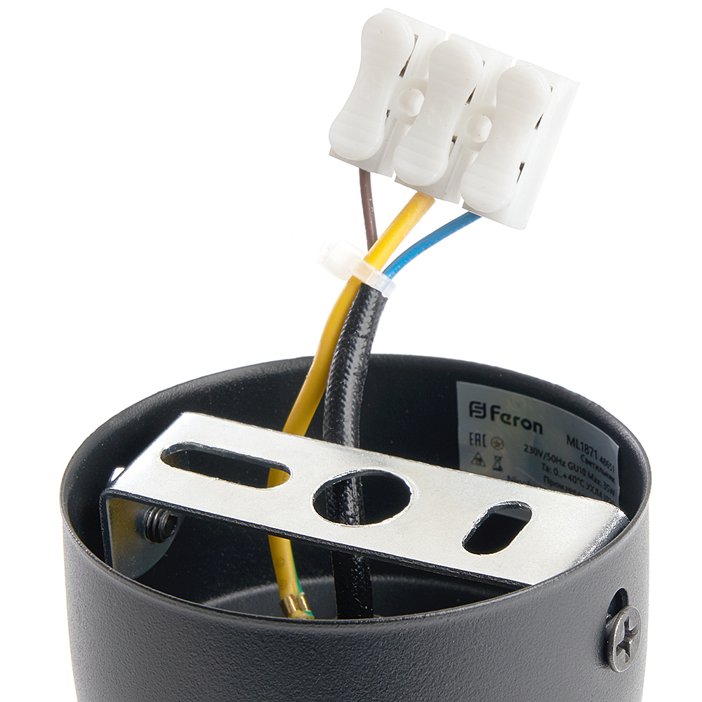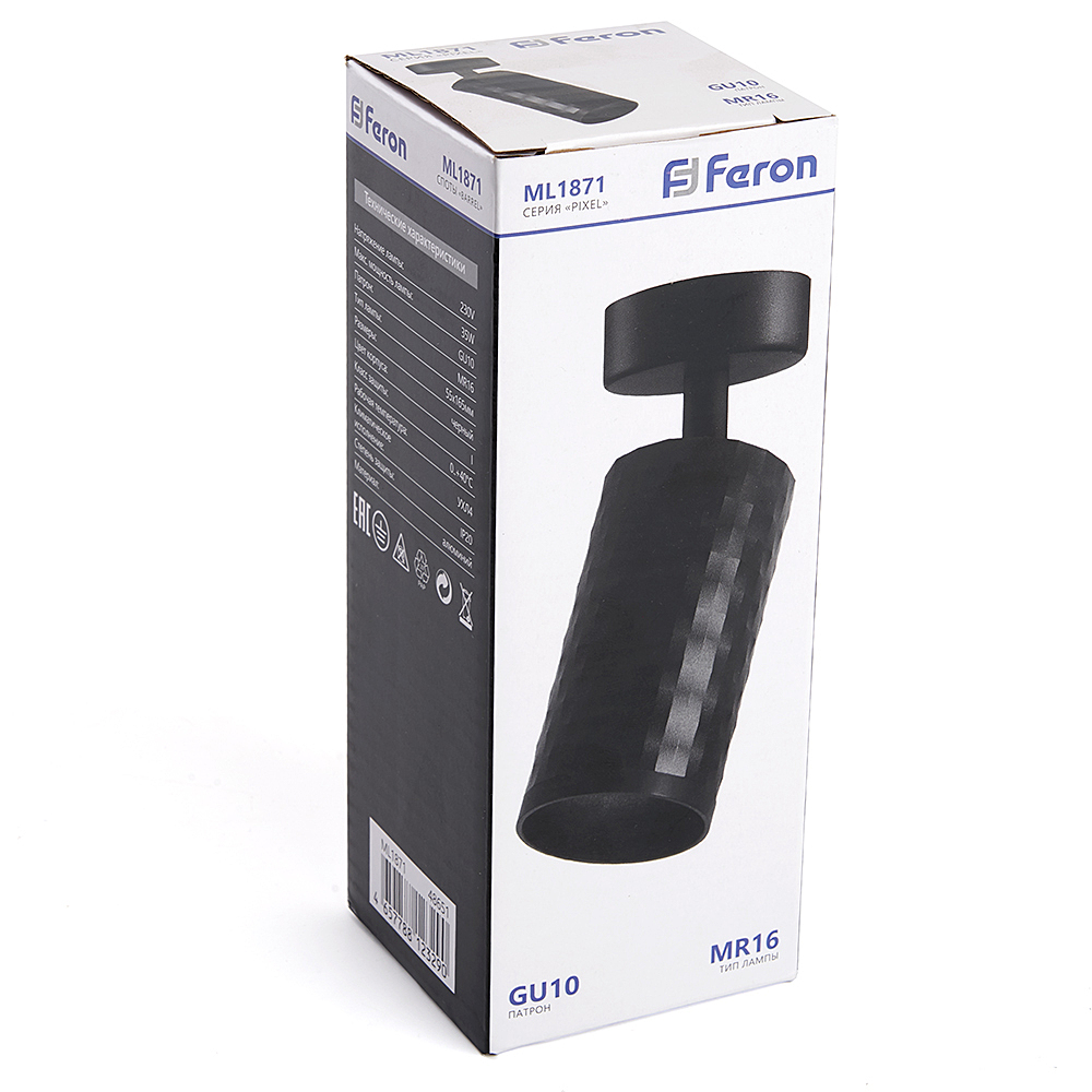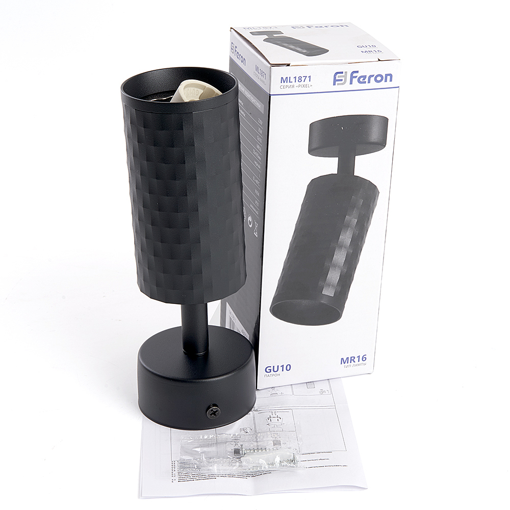 Светильник накладной под лампу, спот (-) FERON ML1871, GU10 35W, 230V, IP20, цвет черный, корпус алюминий, 55*55*165