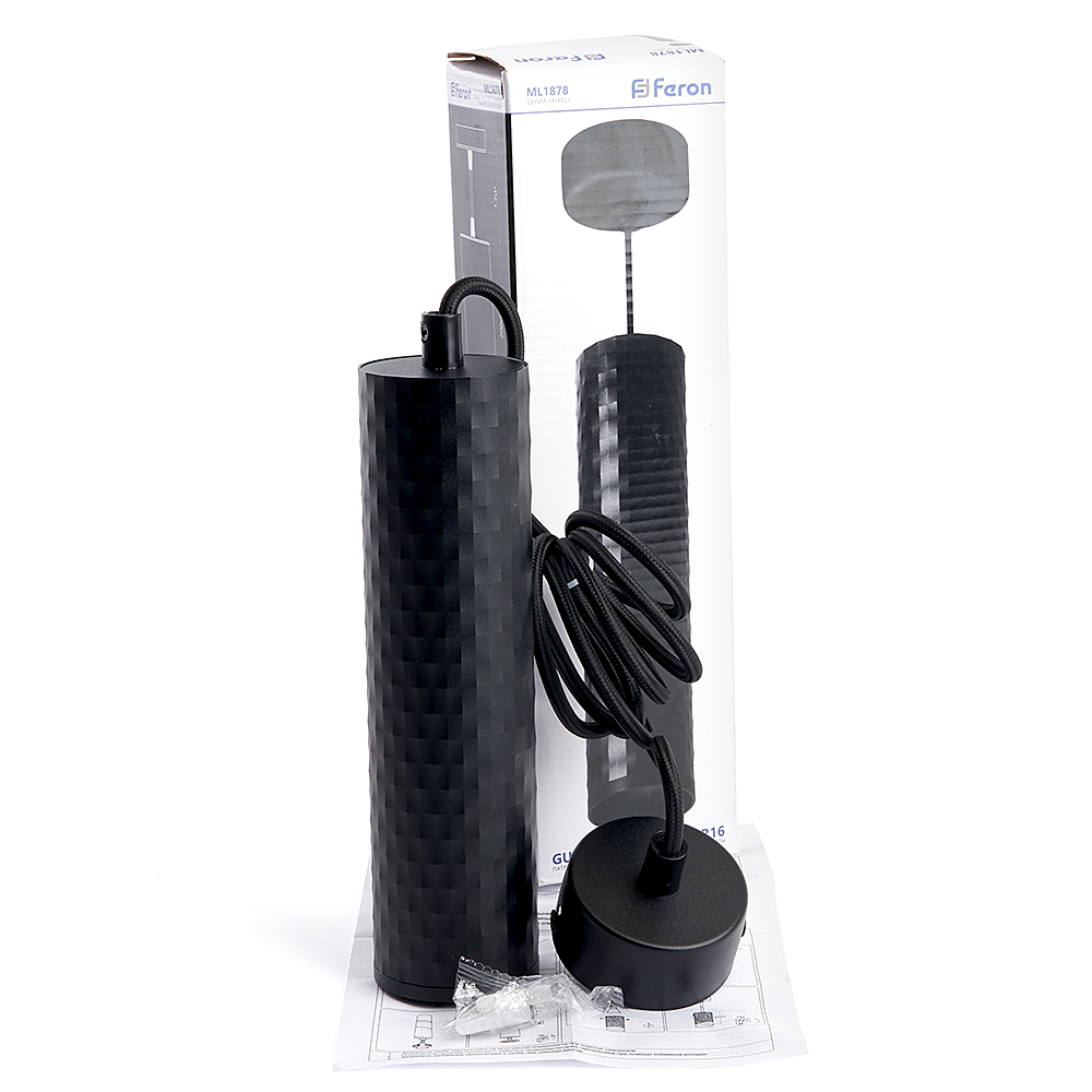 Светильник накладной под лампу, спот (-) FERON ML1878, GU10 35W, 230V, IP20, цвет черный, корпус алюминий, 55*55*200
