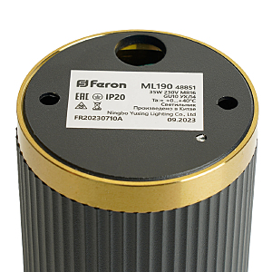 Светильник накладной под лампу, спот (-) FERON ML190, GU10 35W, 230V, IP20, цвет черный, корпус алюминий, 55*55*110