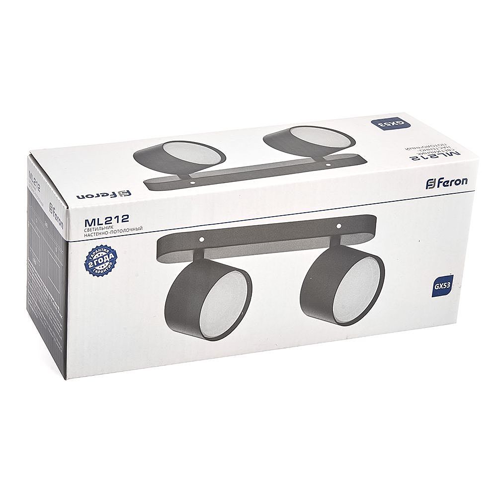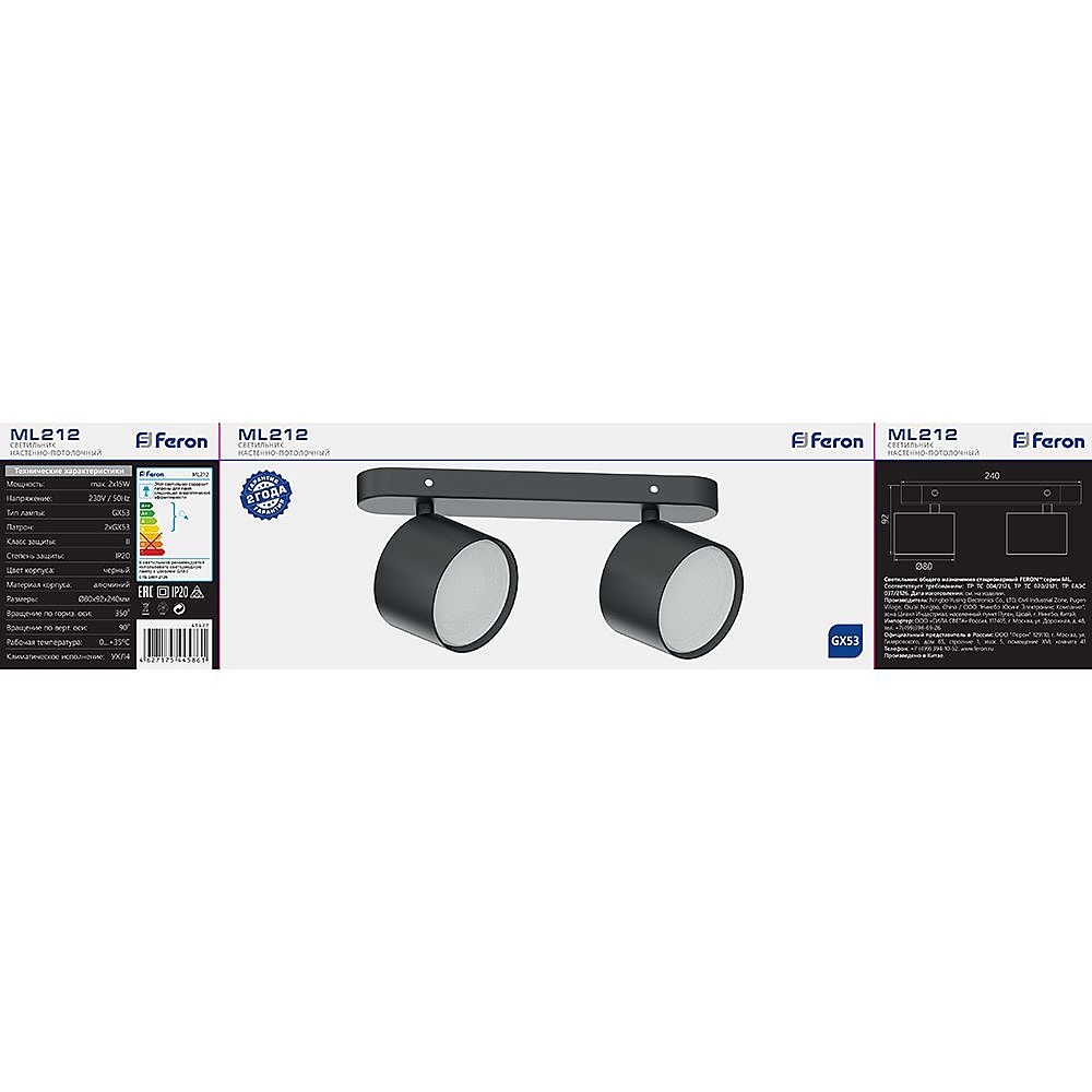 Светильник накладной под лампу, поворотный (ИВО) FERON ML212, GX53 2*15 W, 230V, IP20, цвет черный, корпус алюминий, 240*80*92