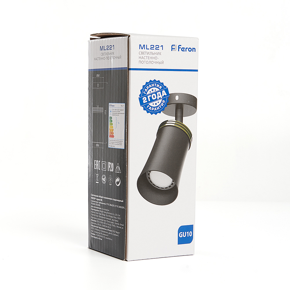 Светильник накладной под лампу, поворотный (ИВО) FERON ML221, GU10 50W, 230V, IP20, цвет черный, корпус алюминий, 66*66*172