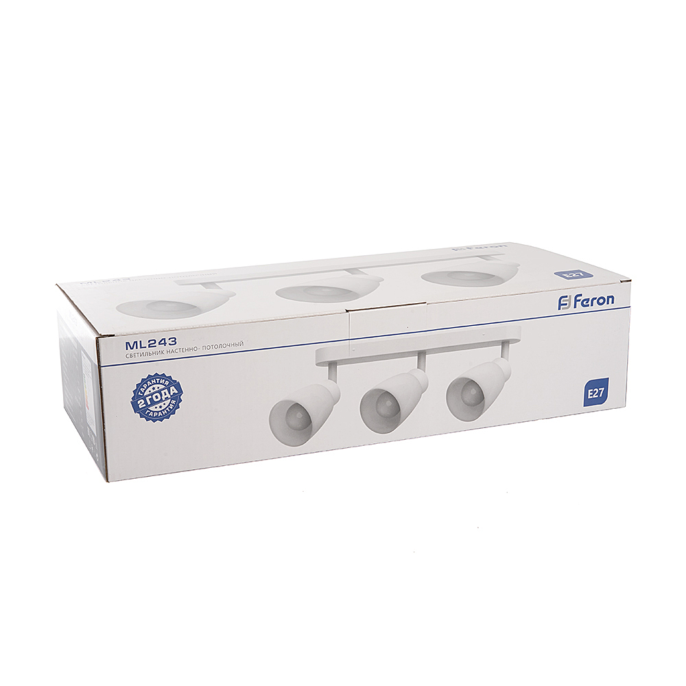 Светильник накладной под лампу, поворотный (ИВО) FERON ML243, 3*E27 3*50W, 230V, IP20, цвет белый, корпус сталь, рассеиватель стекло, 380*90*205